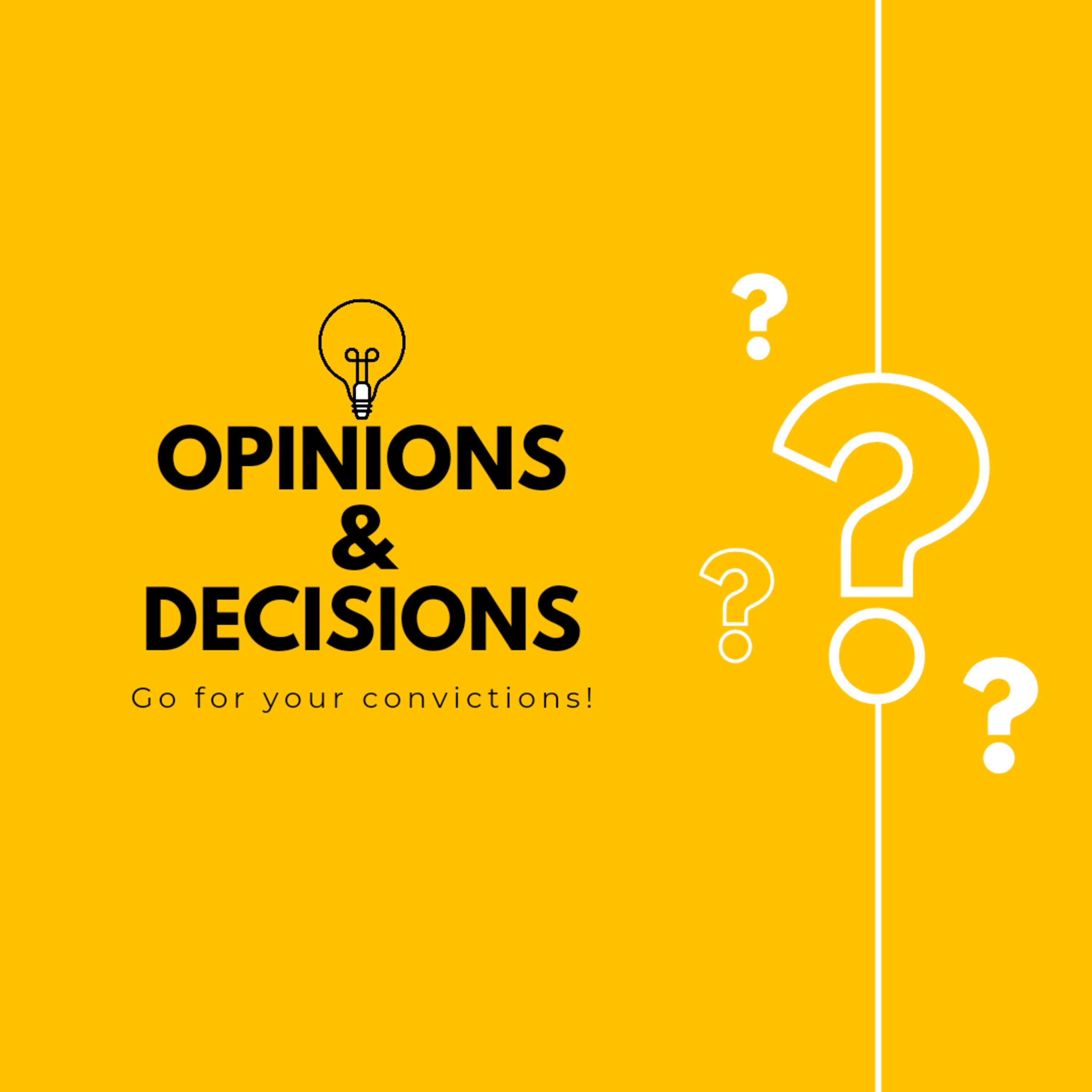 There are so many voices in this world. So many people have a lot to say and suggest. In such a world as ours it's very possible that we tilt towards believing the opinion of people but what is most important is our convictions. Every opinion is a suggestion that has the potential to be wrong. We must define what our convictions are because they ultimately define our decisions and they in turn define our reality.