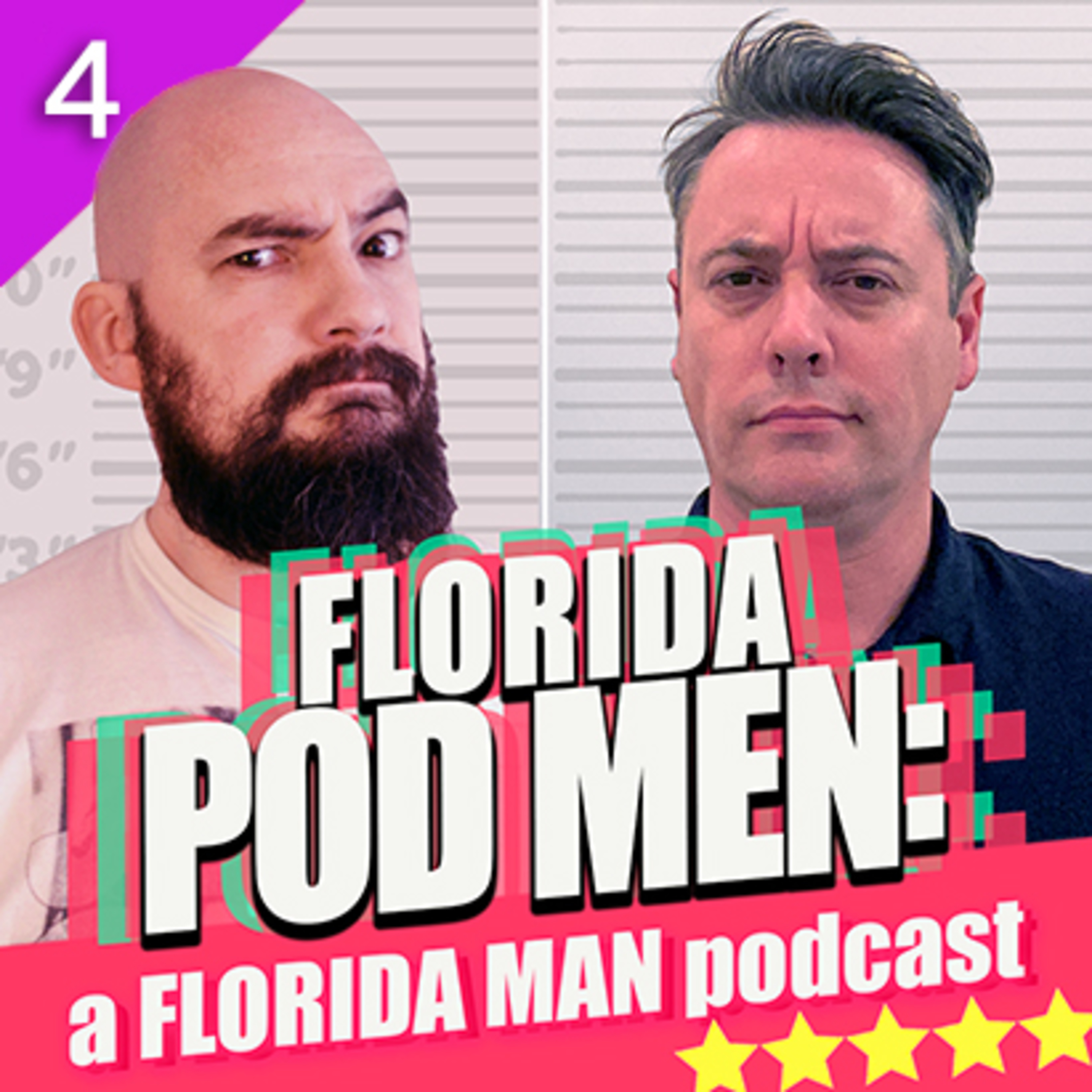 It’s the end of season 4. We go out with a bang when a Florida Man tries to use a live grenade as a bookend. We also meet a Florida Police Man who has trouble with his cars being stolen. Chris threatens to sit on a photocopier.