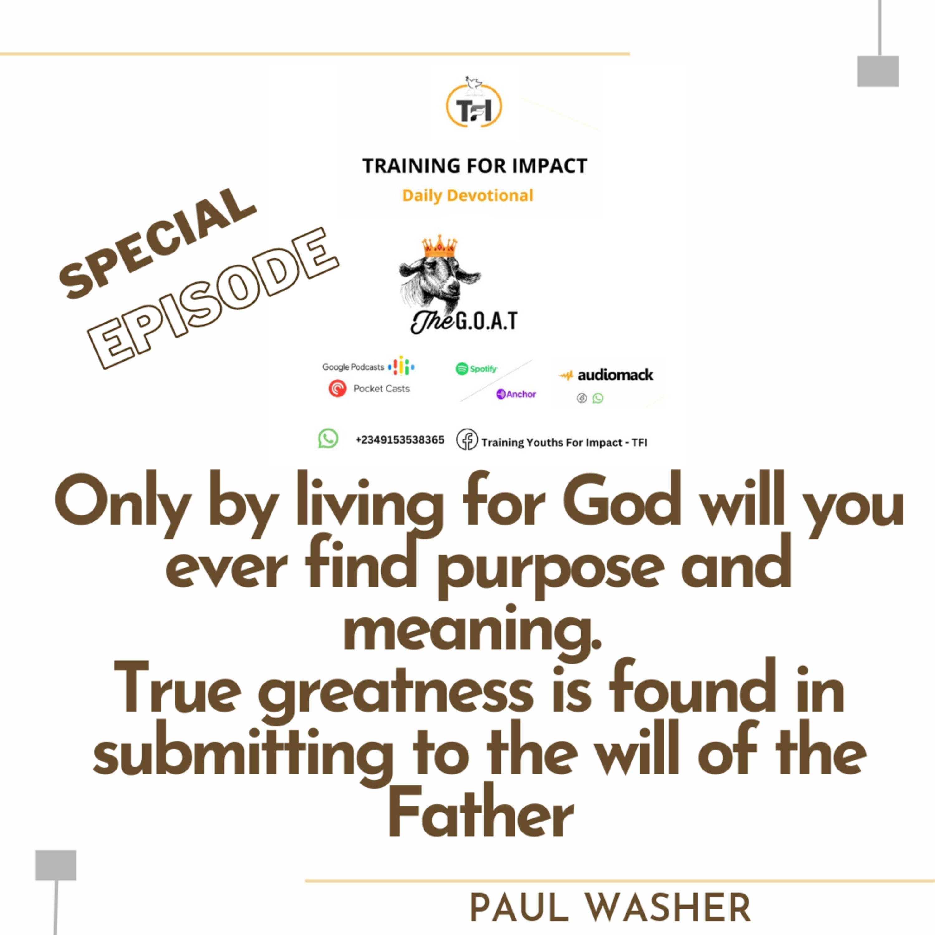 Only by living for God will you ever find purpose and meaning. True greatness is found in submitting to the will of the Father.