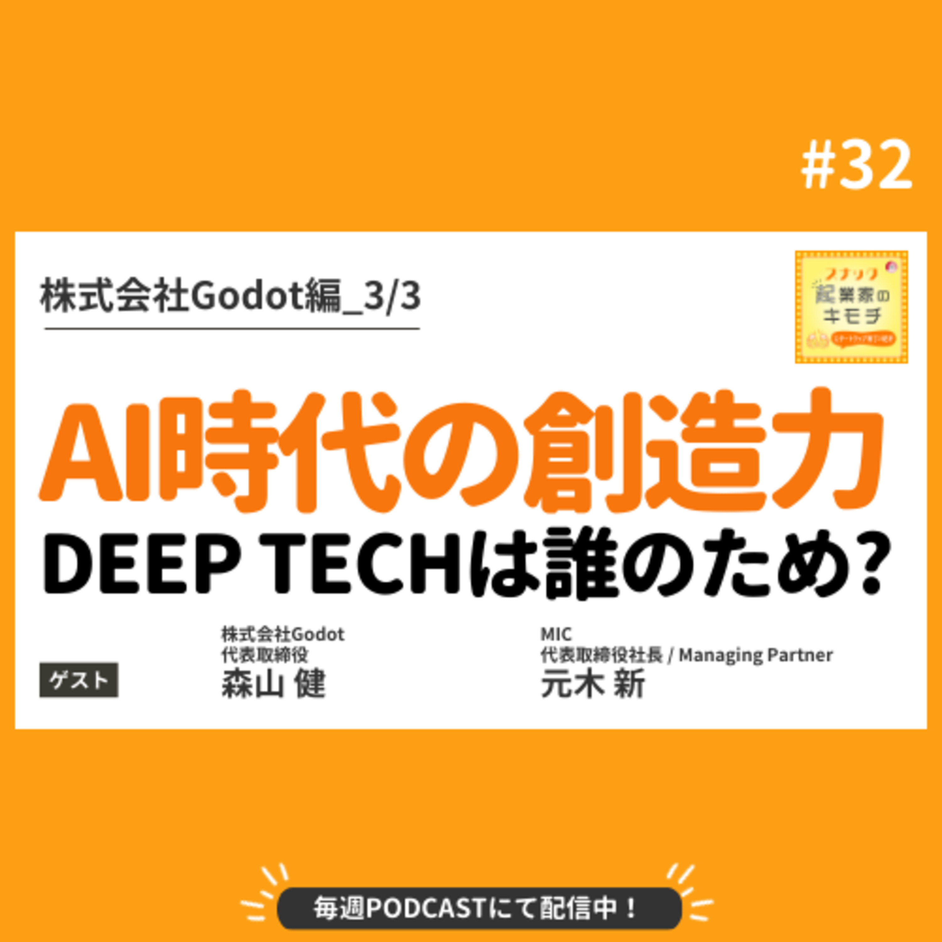 Godot森山さんを迎えての最終週。今宵は担当キャピタリスト元木さんも加わり、よりディープな夜をお届け。AIがソフトウェアを自動生成する時代に、VCは何に投資するのか?起業家はどこに希望を見出しているのか?2人が語る、これからのプロダクト論と起業戦略。キーワードは“ディープテック×知的好奇心×顧客視点”。現場のリアルな視点に、ママも少しだけ混乱しつつ…スナック起業家の醍醐味がつまった一夜をお楽しみください。