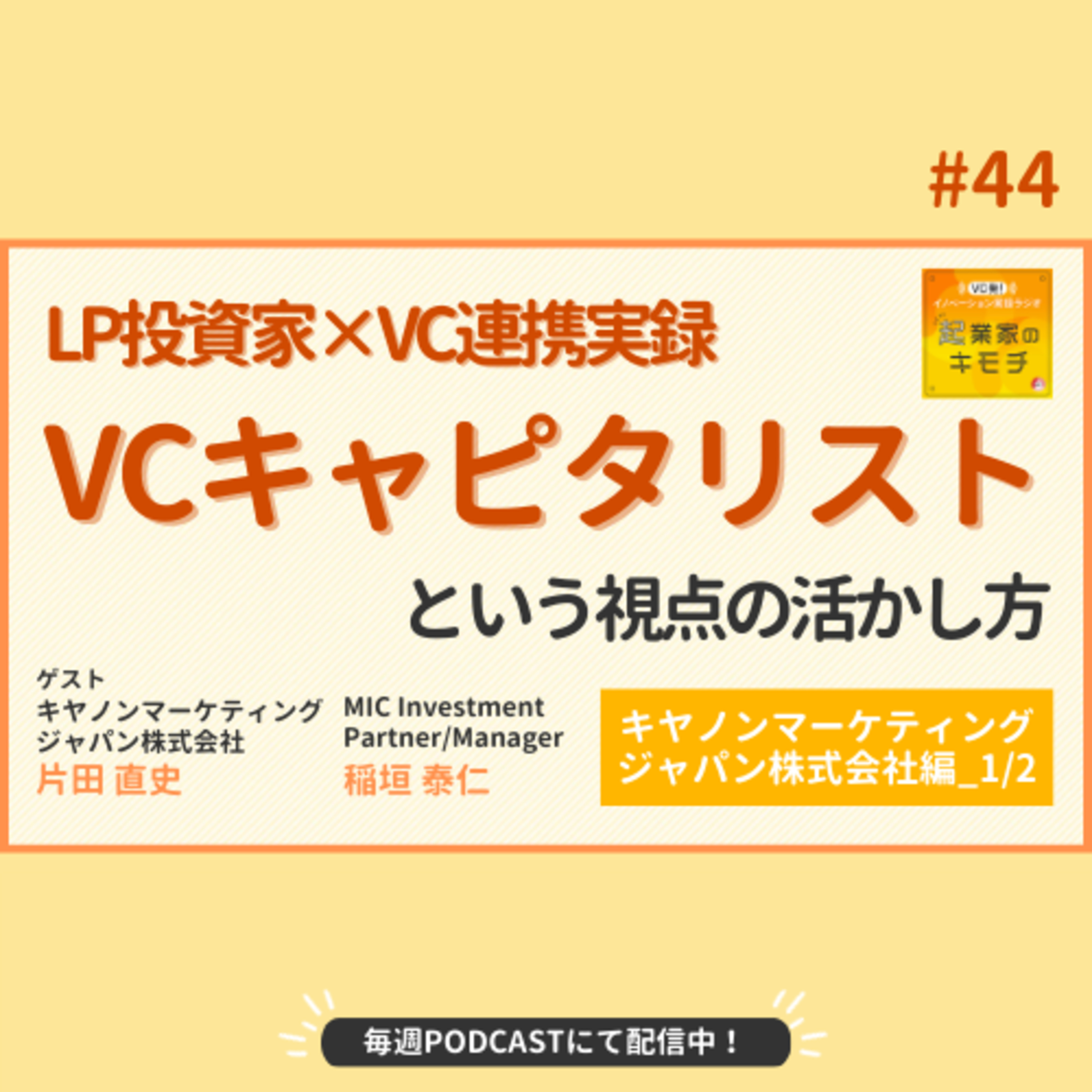 今週からは2週に渡り、LP投資家であるキヤノンマーケティングジャパン株式会社(以下CMJ)さんとのコラボ企画です。1年半ほど前から弊社へ常駐いただいているCMJの片田さんをゲストに迎え、弊社キャピタリストと共に、LP投資家とVC連携の実態をお届けします。