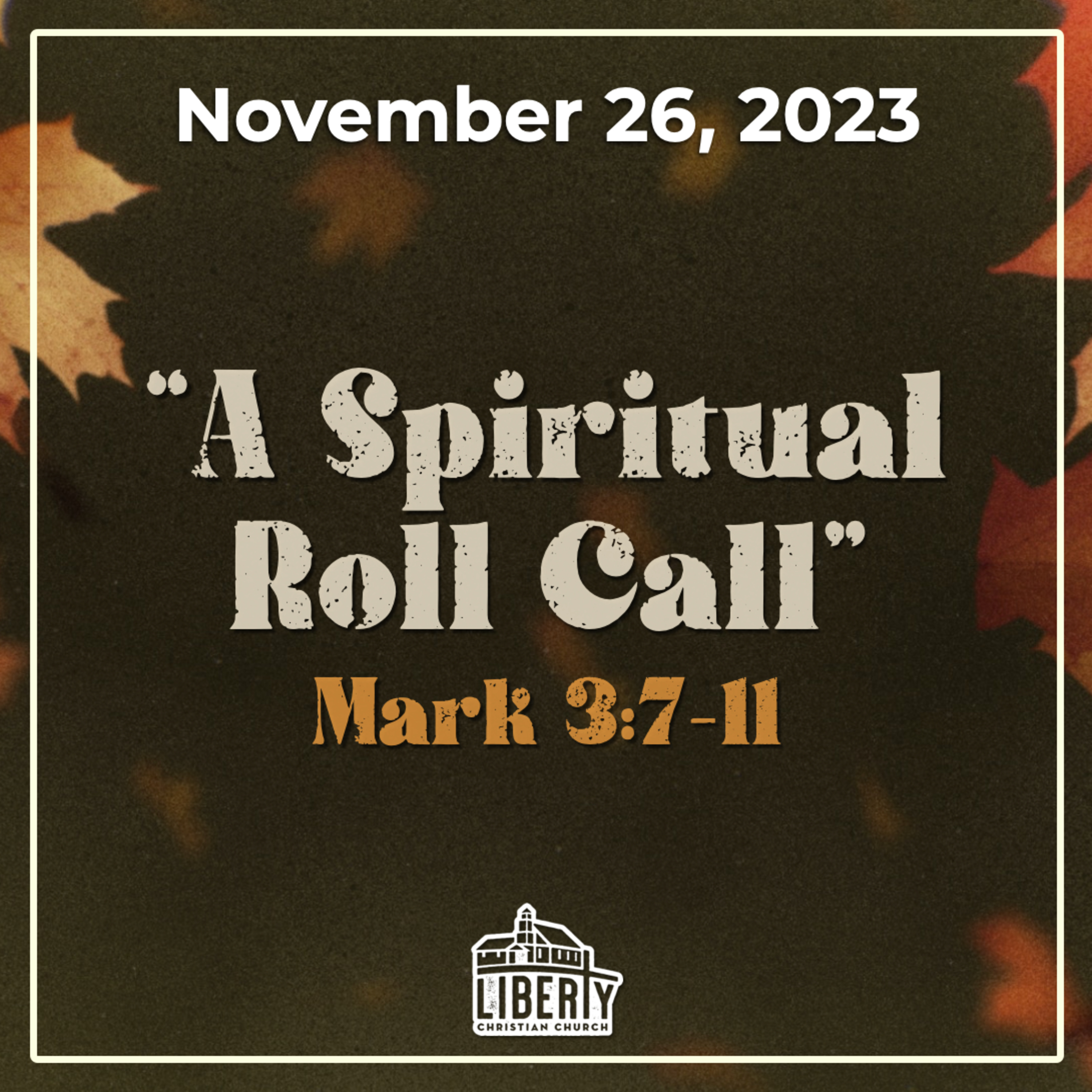 SERIES: N/A | SERMON: "A Spiritual Roll Call" | TEXT: Mark 3:7-11 | DATE: 11/26/2023 | SPEAKER: Jake Brown | www.Liberty-Christian.com