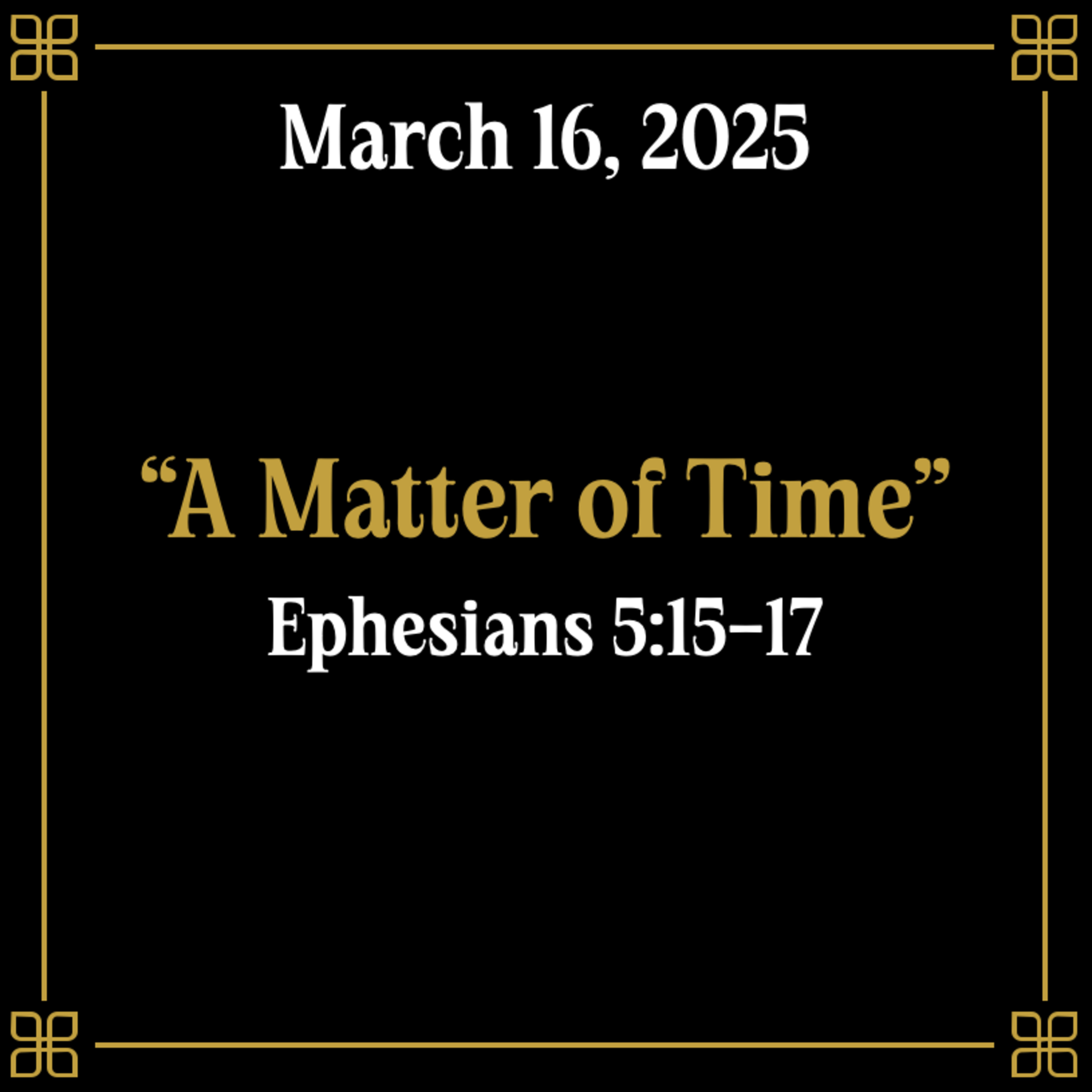 SERMON: "A Matter of Time" | TEXT: Ephesians 5:15-17 | DATE: 3/16/2025 | SPEAKER: Jake Brown