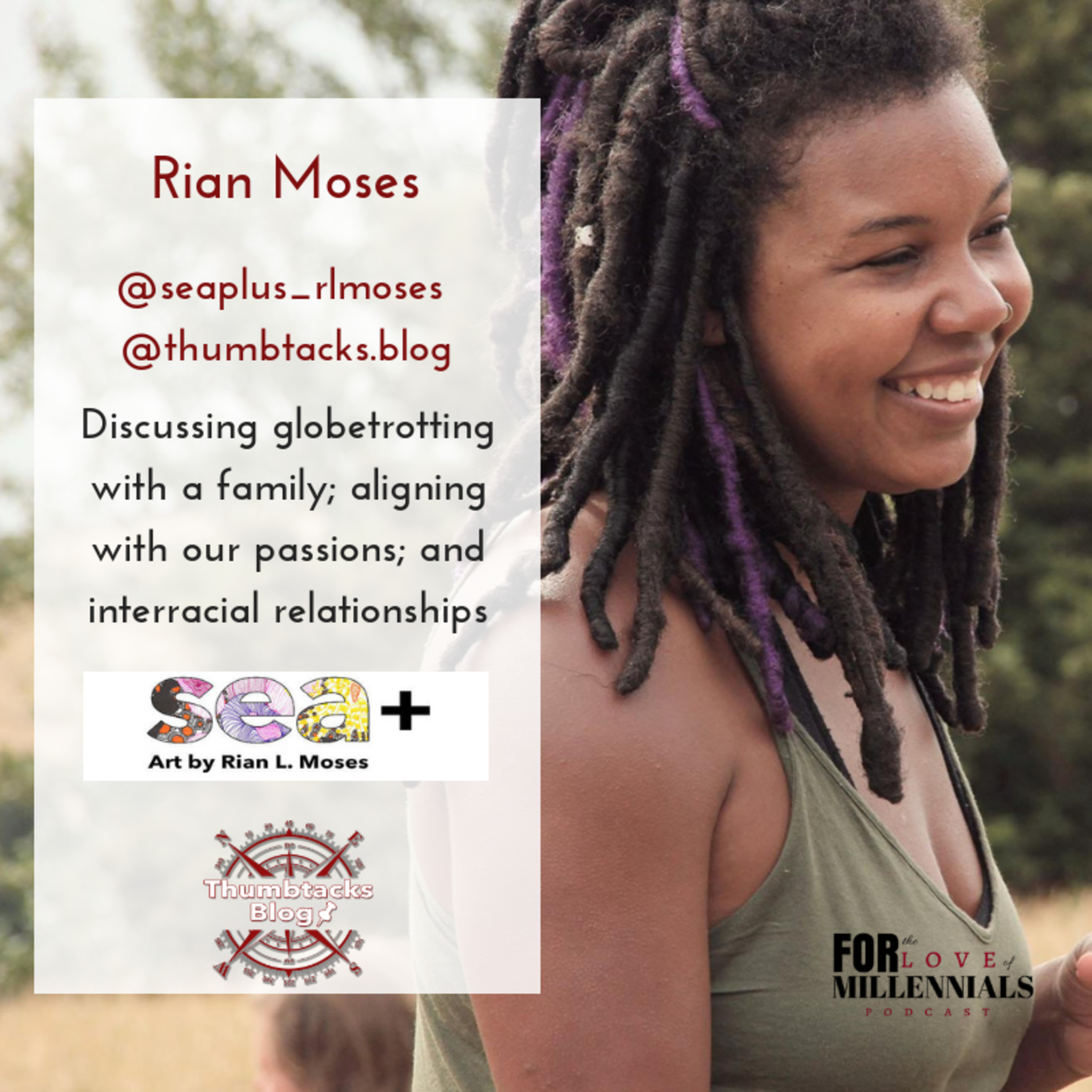 Our special melanin millennial guest is Rian Moses. Rian, a wife and mother, is not afraid to follow her passion's and see where she ends up. Her family is #1, but art and travel trail closely behind. She feels most complete when she is genuinely helping others better their lives in some way. Rian spent her 20's following the "American Dream" model and realized it wasn't her own dream. She is switching things up in her 30's.