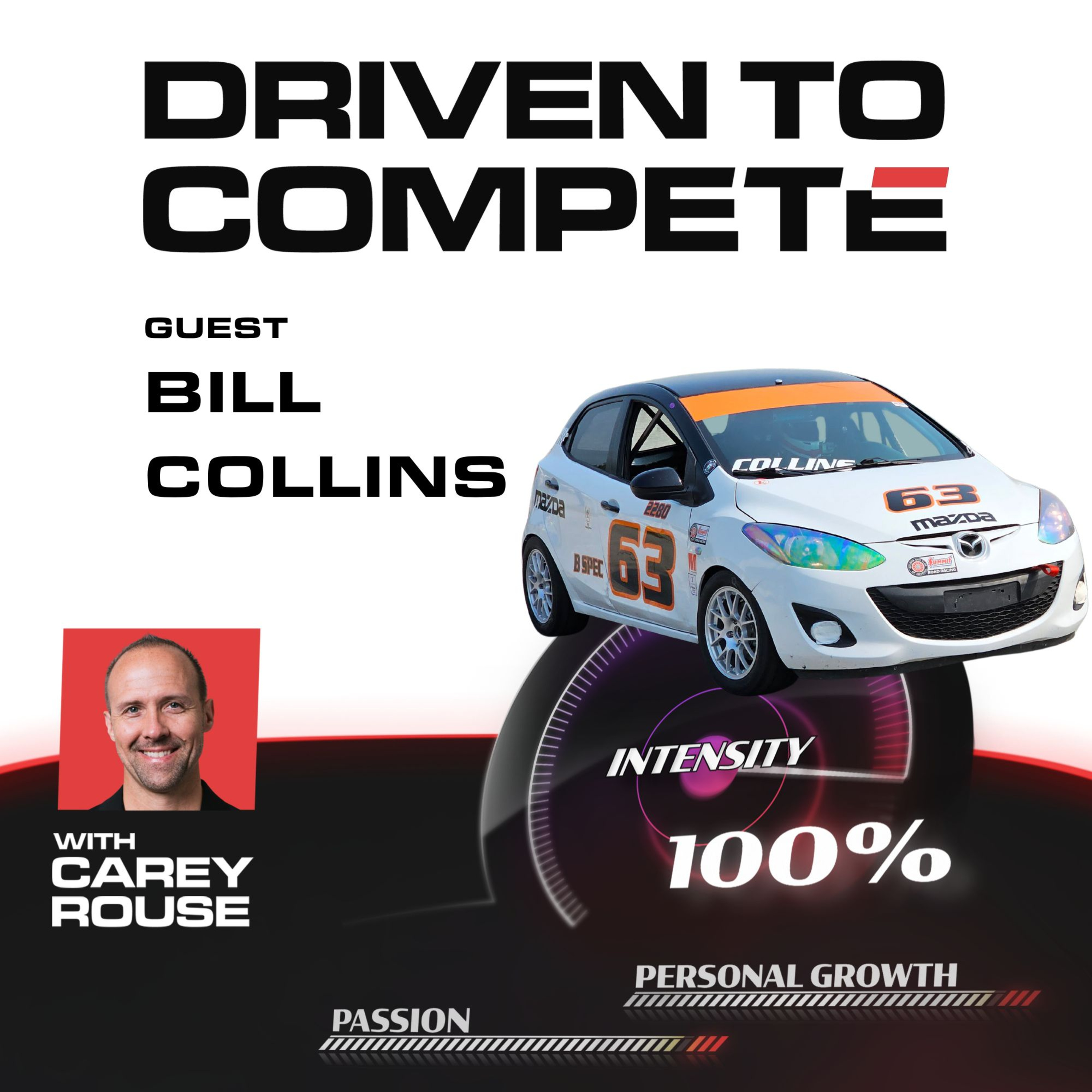 On episode 111 of Driven to Compete Carey met with Bill Collins. Bill has only raced 3 events in B-Spec and is already up-to-speed with many of the other drivers. He drives a Mazda2. He spent several years running the Corvette in the SCCA T2 class but wanted to a different class that was cheaper but just as much fun, which led him to B-Spec. Over the years he's done some circle track and ice racing. He's got a great story about ice racing that you need to hear.