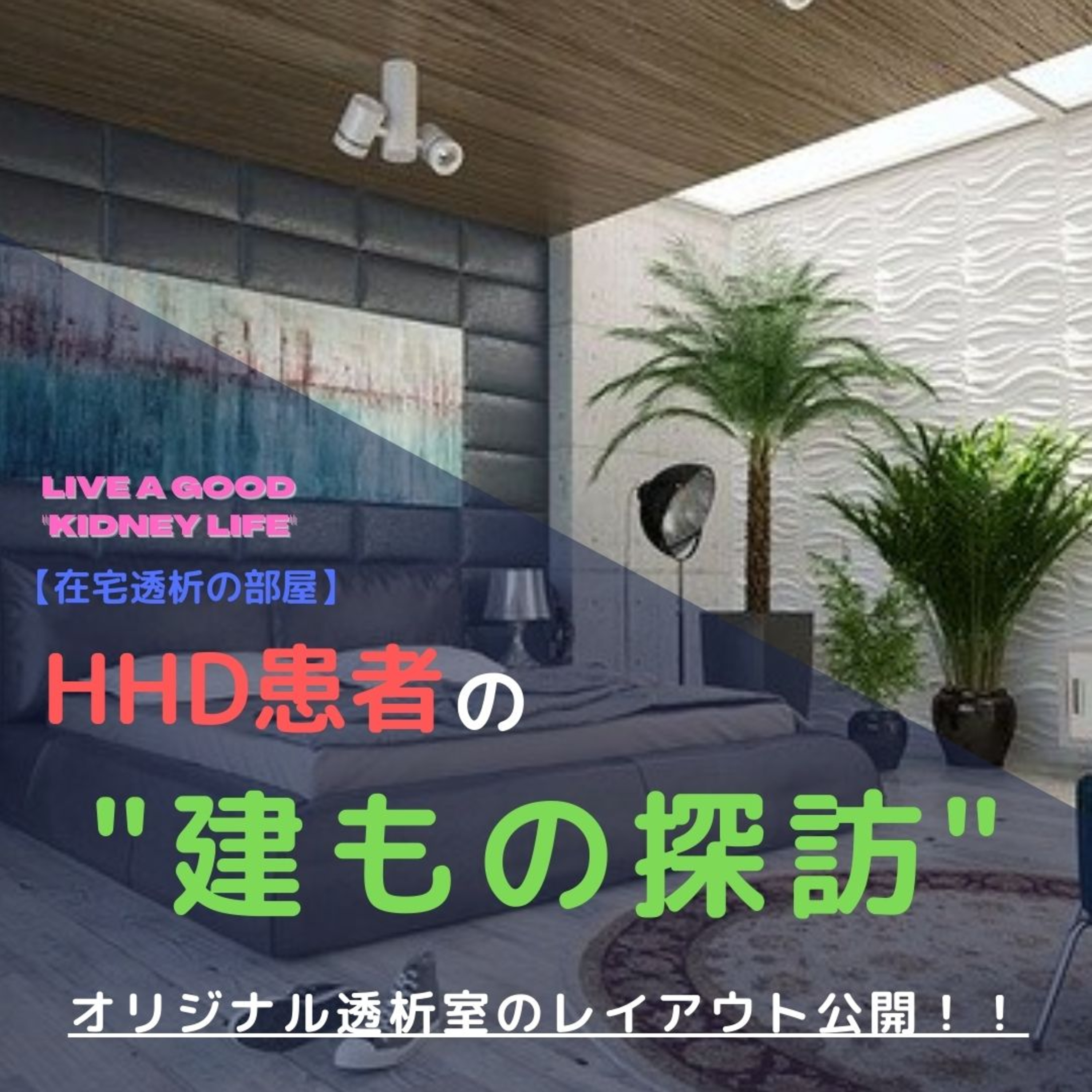 今回私が紹介するものは、あくまでOne of them。100人HHD患者がいれば100種類の"透析モデルルーム"があると思いますが、これからHHD導入される方、導入検討されている方がご満足できる"あなた色"の透析ルームを作る、手助けになればと思います。