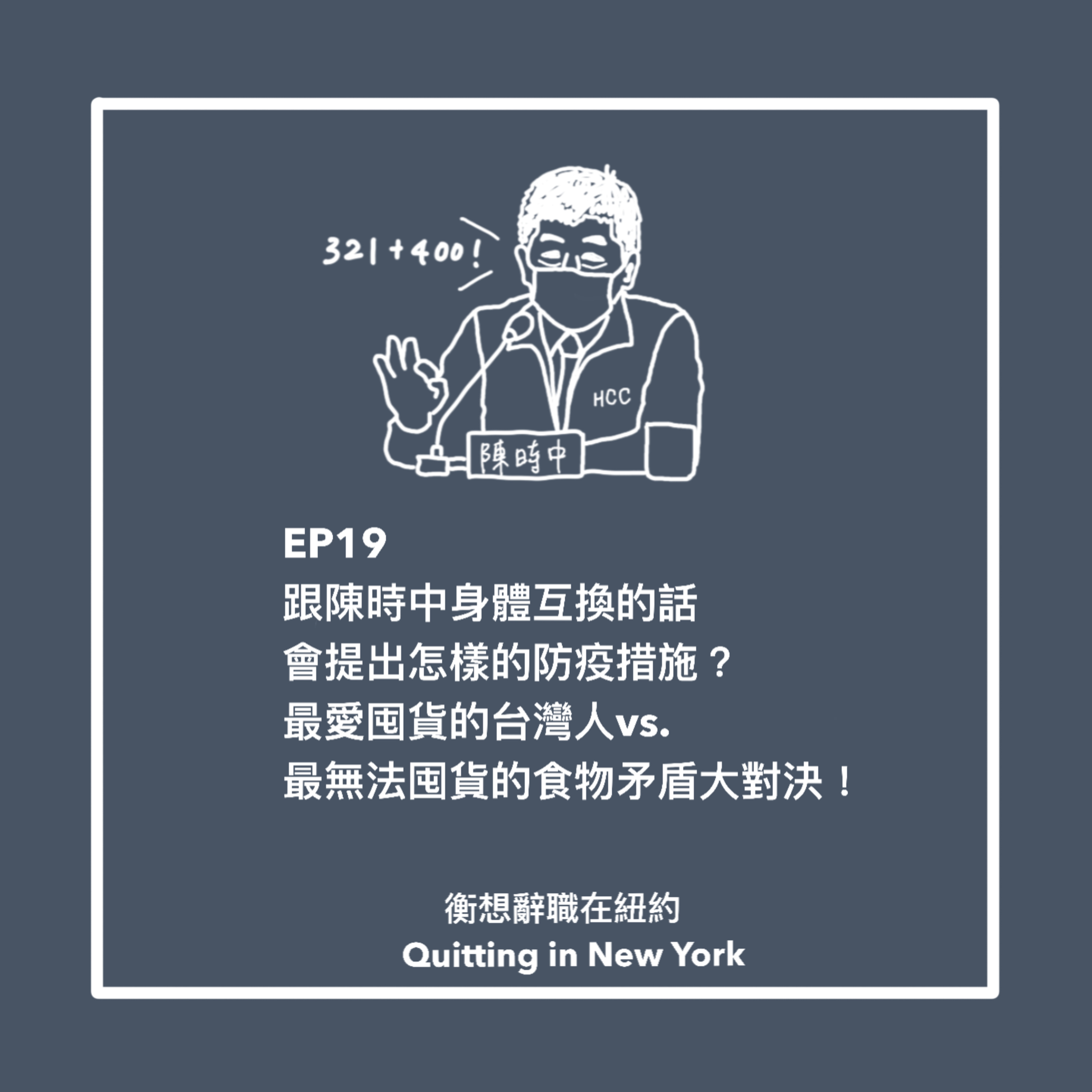 這集終於上架啦,主持人衡欸跟貝卡早就覺得台灣防疫太過鬆散惹啦,所以斗膽要來給點意見啦!我們要帶來的是兩位主持人天方夜譚的防疫措施!題目叫「如果跟陳時中互換了身體,會提出哪些防疫點子呢!」不管你是硬是要在電梯裡攀談的過度熱心鄰居,手不安分在捷運上亂摸扶手的癡漢癡女,遠端上課還硬是出很多作業的老師,或是堅持要客製化外賣晚餐的食尚玩家,我們要在此宣佈這些全部都要抓去關!!!