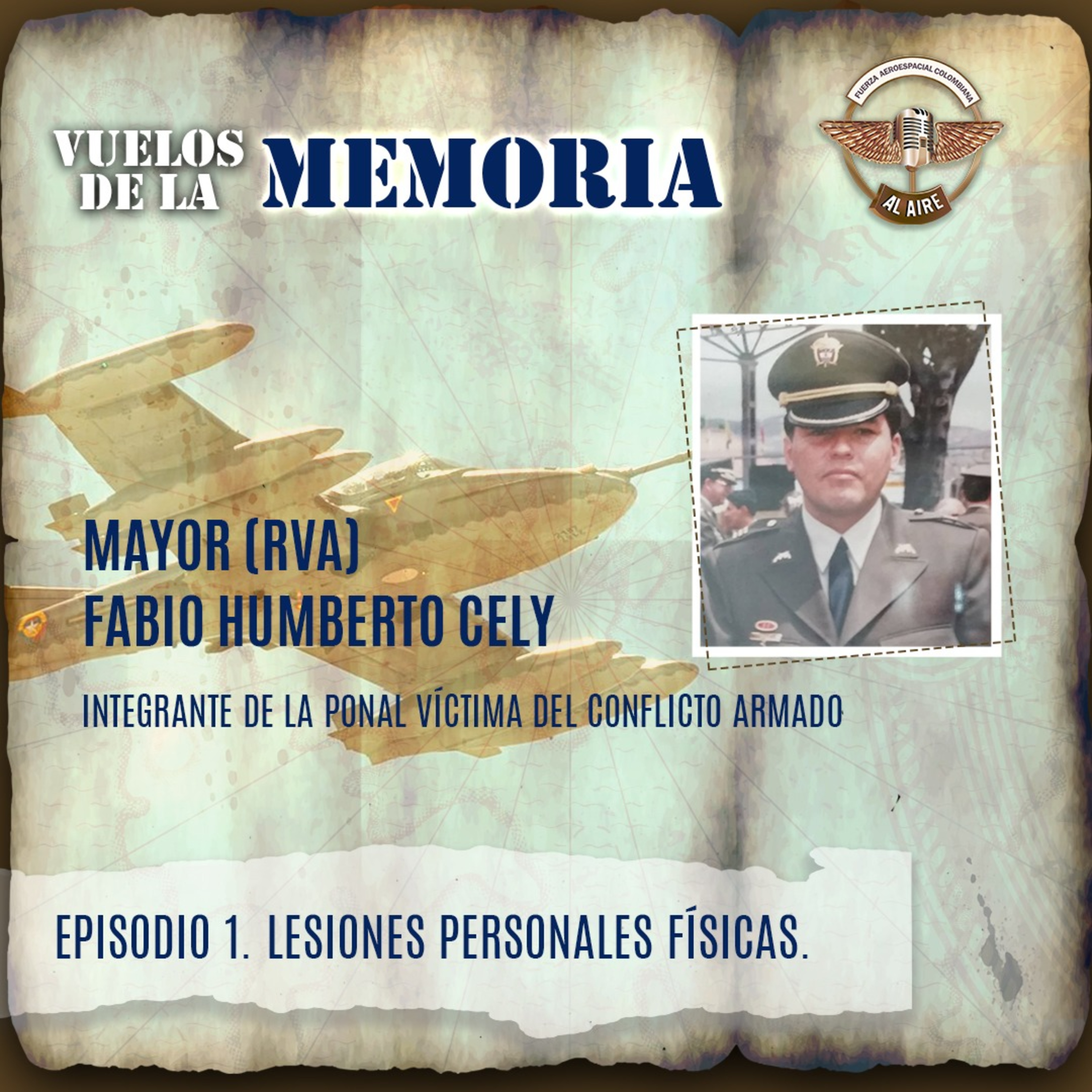 Bienvenidos a Vuelos de la Memoria, un podcast que busca visibilizar y dignificar a los miembros de la Fuerza Pública víctimas del conflicto armado en Colombia.En este episodio, exploramos las lesiones personales, tanto físicas como psicológicas, como hechos victimizantes en el marco del conflicto armado. Contamos con la participación del Mayor (RVA) Fabio Humberto Cely. 🔔 No olvides suscribirte al canal y activar la campanita para no perderte nuestros próximos episodios.💬 Déjanos tu opinión en los comentarios y comparte este contenido para seguir visibilizando las historias de quienes han servido a nuestro país.#VuelosDeLaMemoria