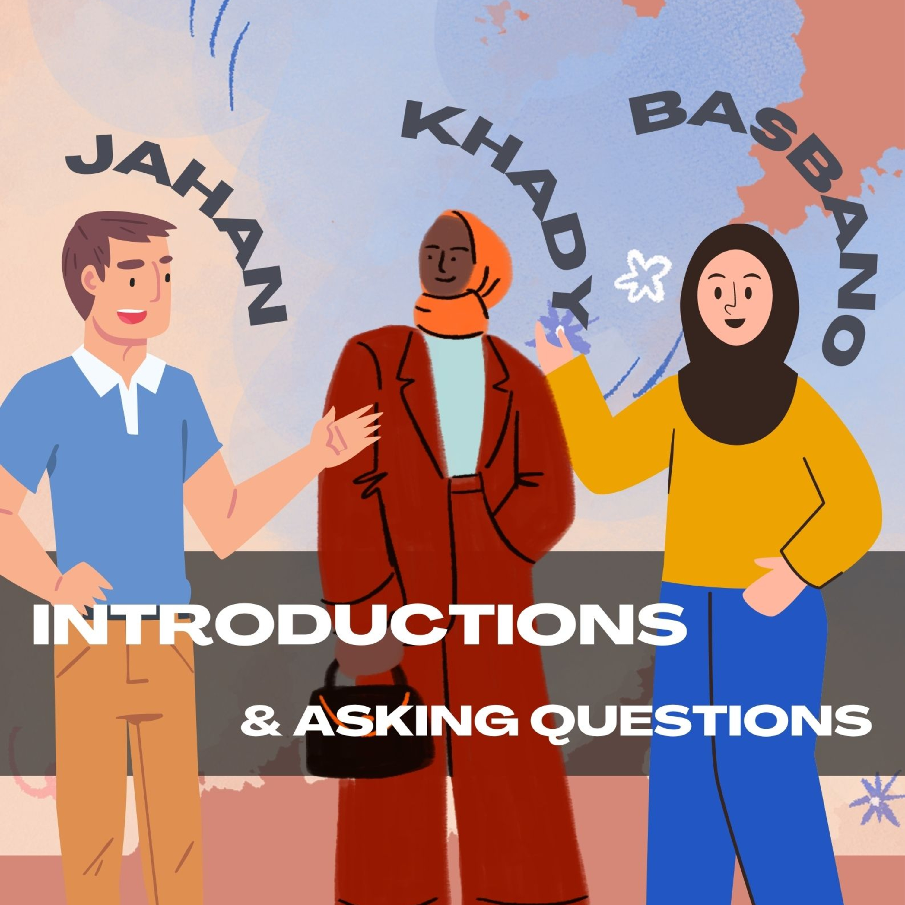 Jahan, Khady and Basbano introduce themselves and ask each other questions.