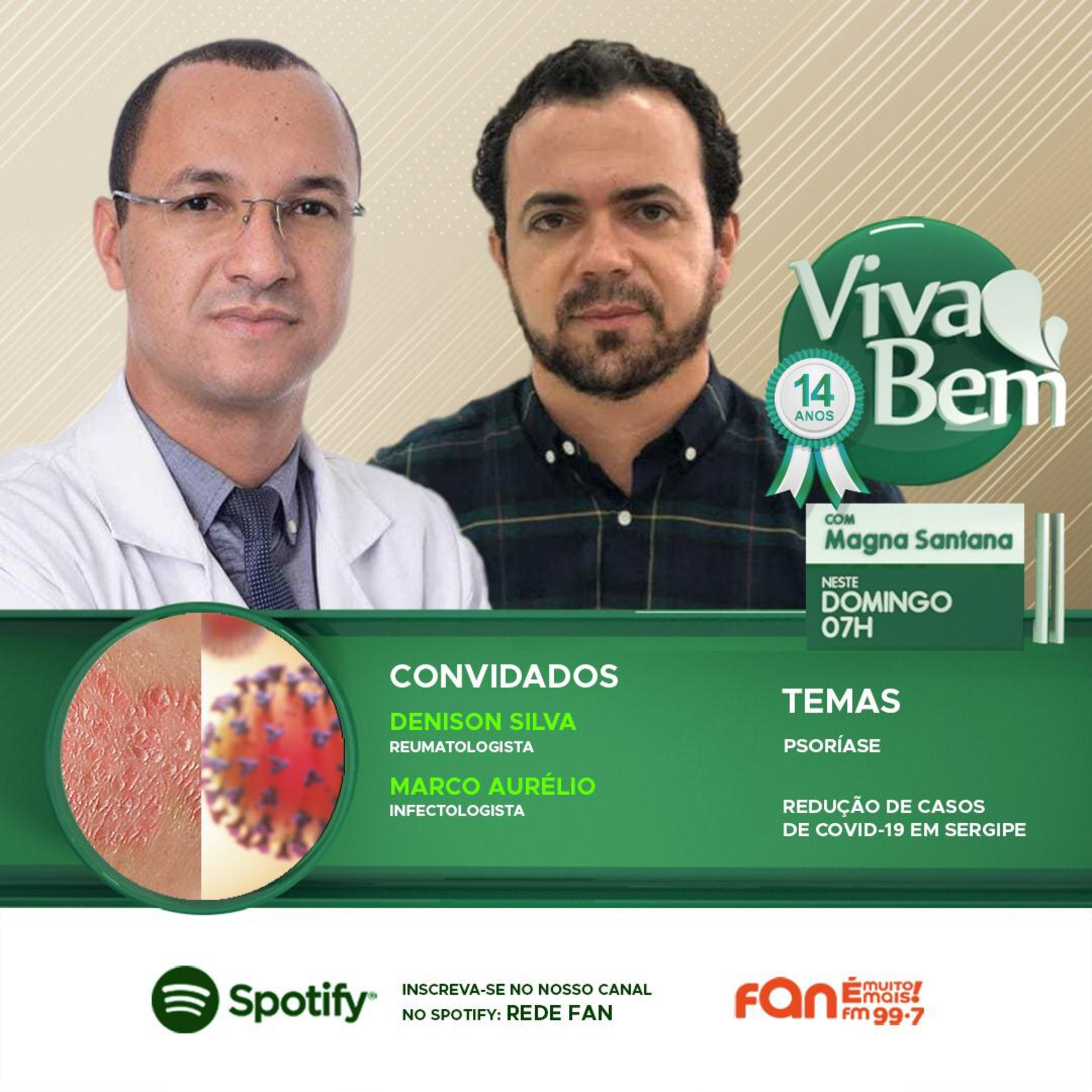 Você já ouviu falar em Psoríase? É uma doença autoimune, inflamatória, não contagiosa e não tem cura, mas se tratada desde o início tem um bom resultado e controle. Muitas pessoas que têm a doença escondem por vergonha e constrangimento. Vamos conversar sobre o assunto com o reumatologista Denison Silva. Também vamos falar sobre a redução de casos de Covid-19 em nosso estado e os cuidados para evitar uma terceira onda, a entrevista é com o infectologista Marco Aurélio Góes, diretor de vigilância em saúde da secretaria de estado da saúde de Sergipe.