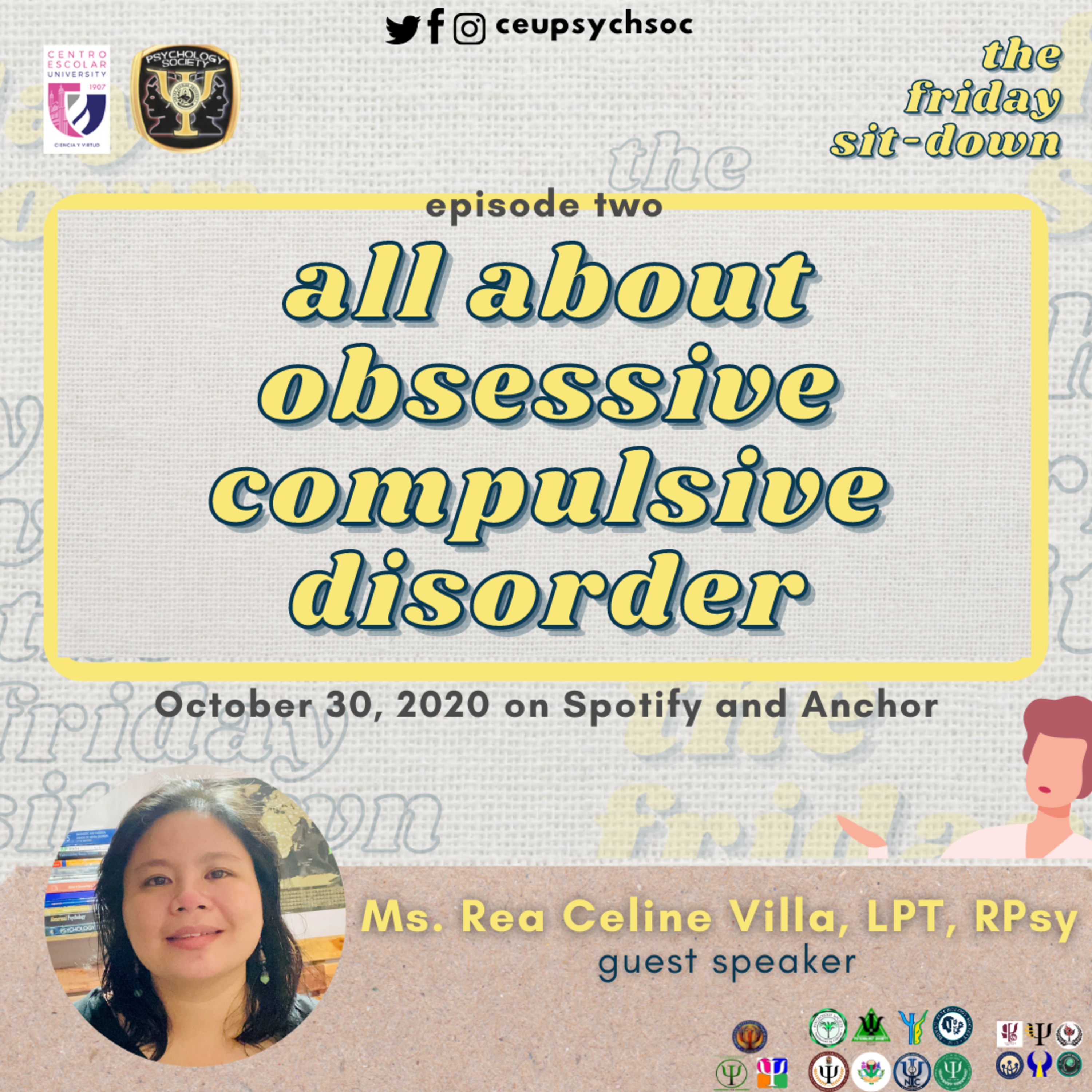 The Friday Sit-down's EP2: All About OCD with Ms. Rea Celine Villa! Answer the evaluation form to receive your certificate! bit.ly/TFSEvalOCD