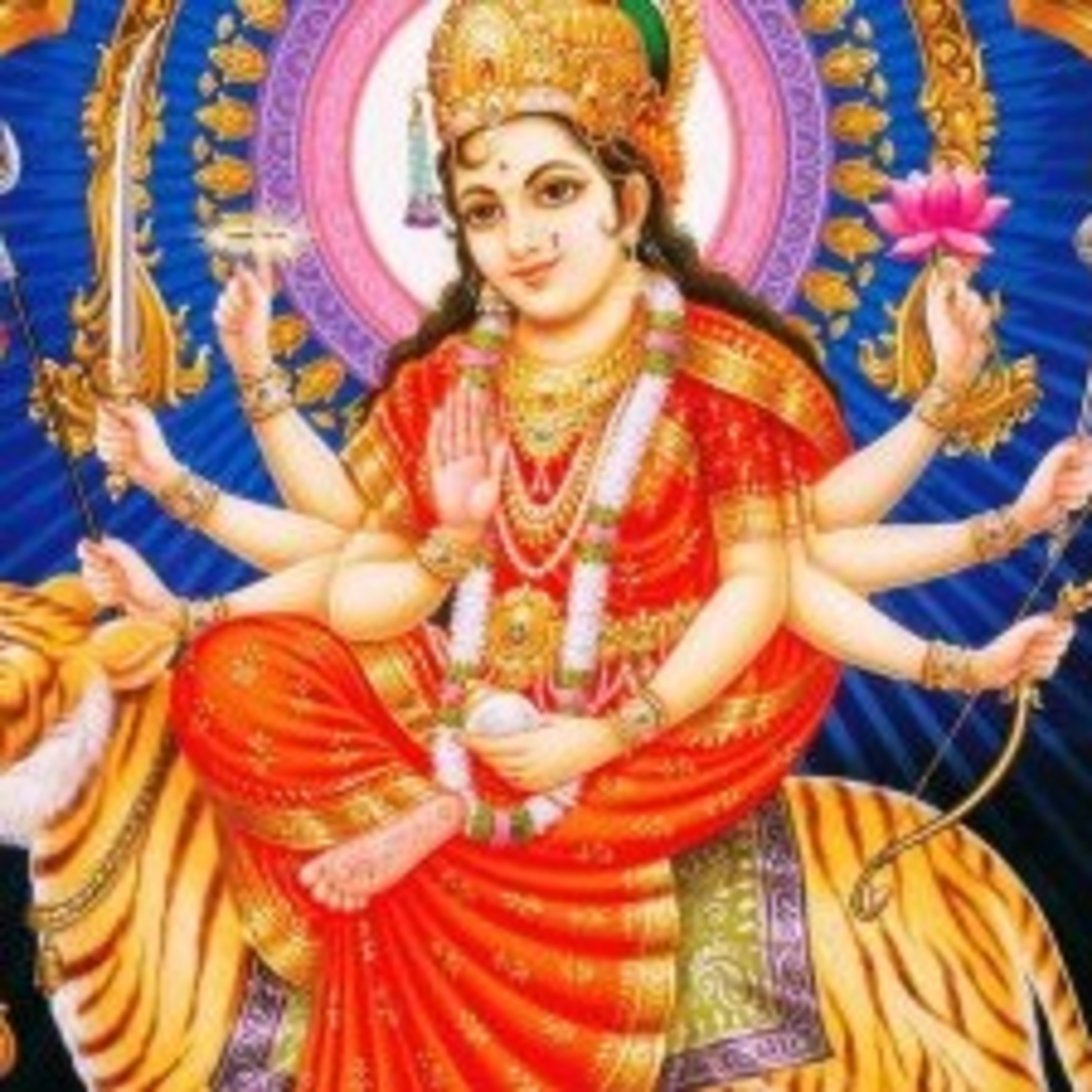 "Kali representa a Mãe Natureza. Seus quatro braços evocam a Criação, a Preservação, a Destruição e (o quarto) o dom da Salvação para aqueles que vão além da Natureza em busca do âmago Infinito. A guirlanda de crânios significa sua divina onipresença em todas as mentes humanas para mostrar que a vida humana é passageira. Os cabelos revoltos lembram a energia de Deus espalhando-se por toda a Criação. Sua dança, os passos rítmicos imitam a natureza vibratória do universo."