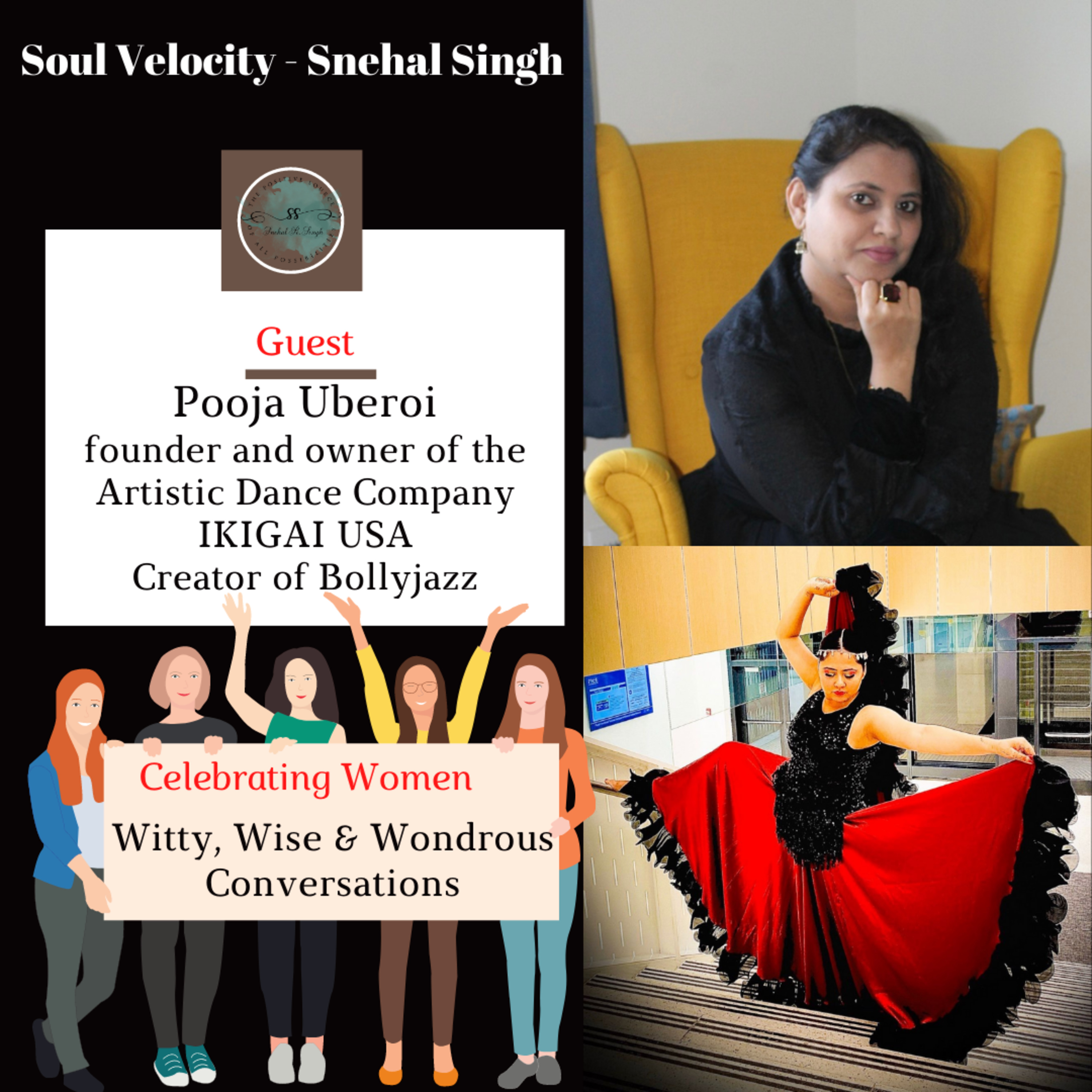 Pooja Uberoi is the founder and owner of the Artistic Dance Company IKIGAI USA which operates in the U.S. and India. Pooja created her own dance classes using a form of dance called BollyJazz. BollyJazz originated with the combination of her training in Jazz and Bollywood Dance.