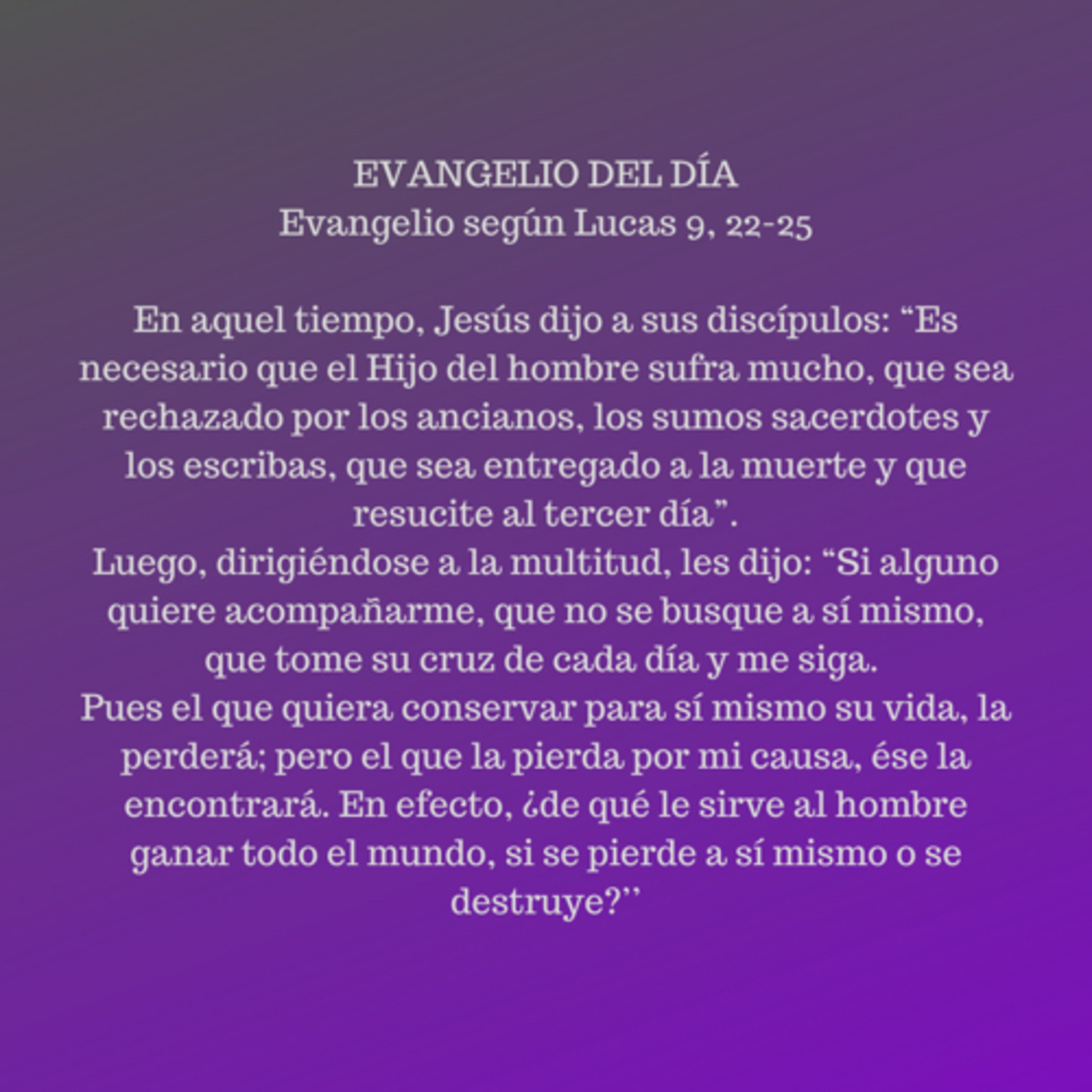 Evangelio según Lucas 9, 22-25