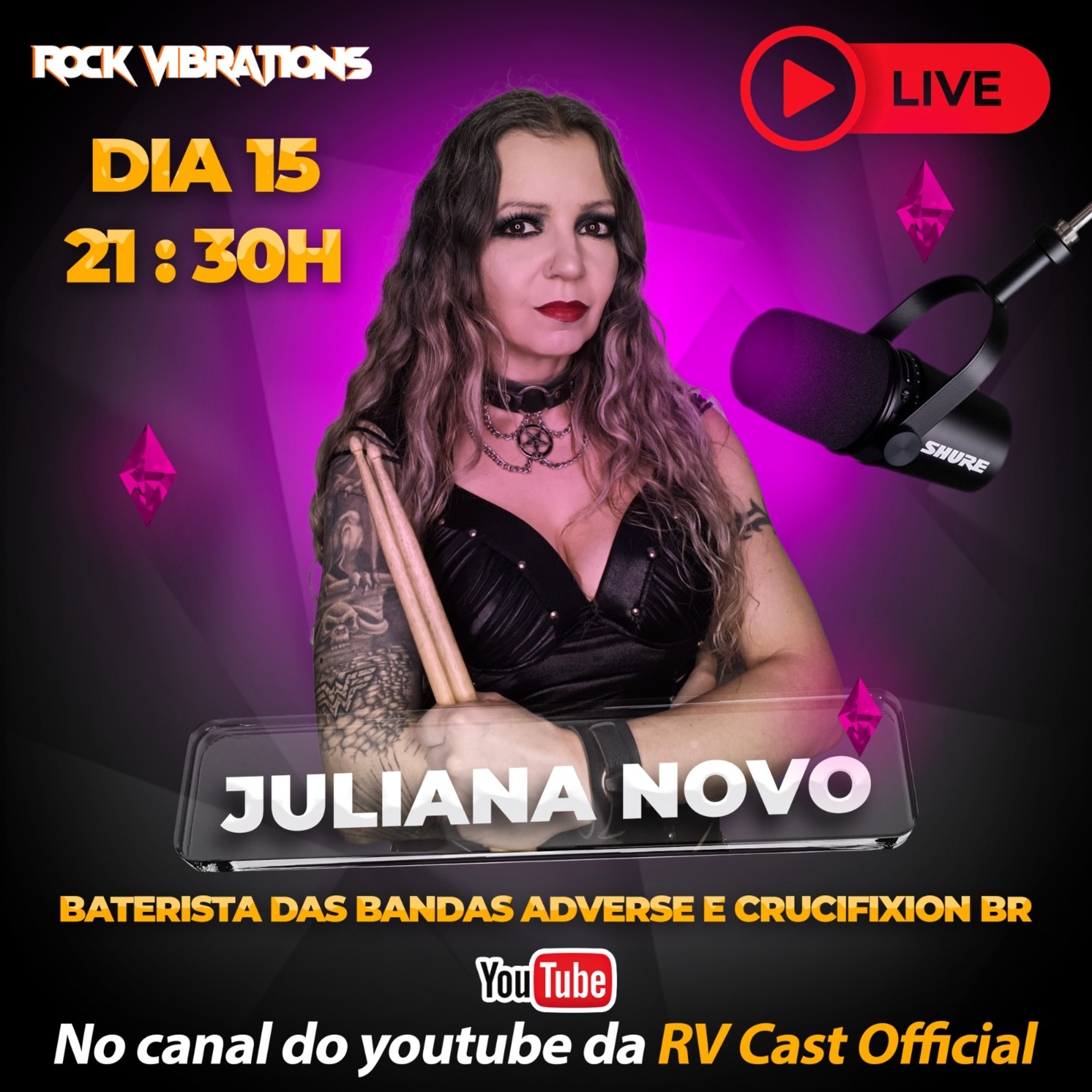 Para a nossa estreia tivemos a musicista Juliana Novo, baterista das bandas Crucifixion BR e também Adverse.