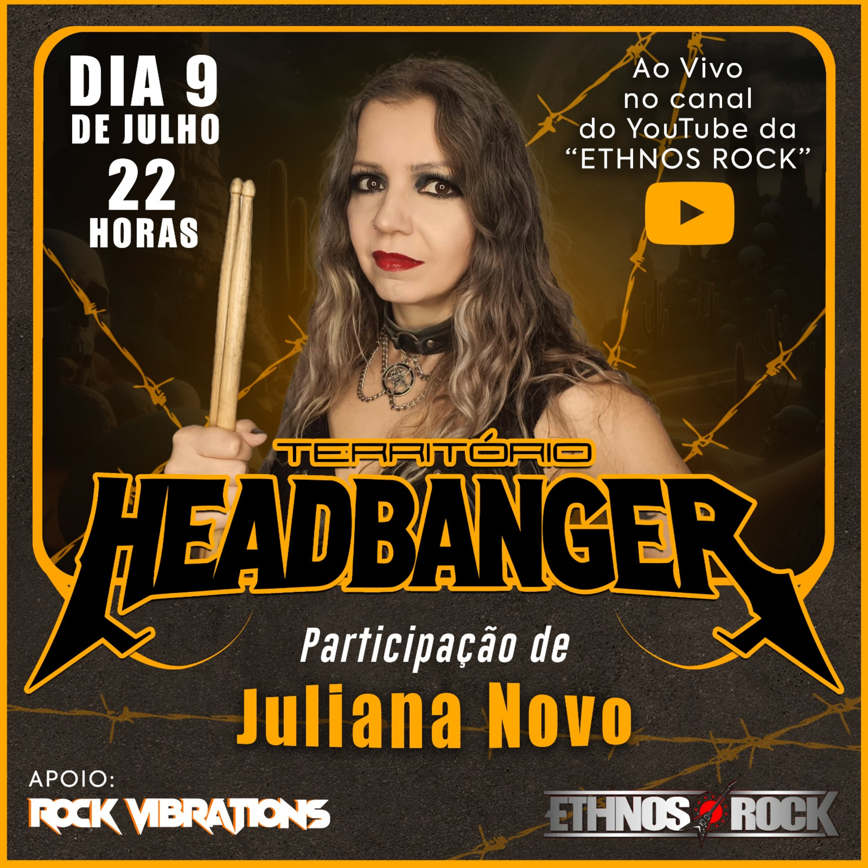 Lembrando que nosso programa vai ao ar todas as terças-feiras a partir das 22:00 horas (horário de Brasília) no canal do Ethnos Rock no YouTube.