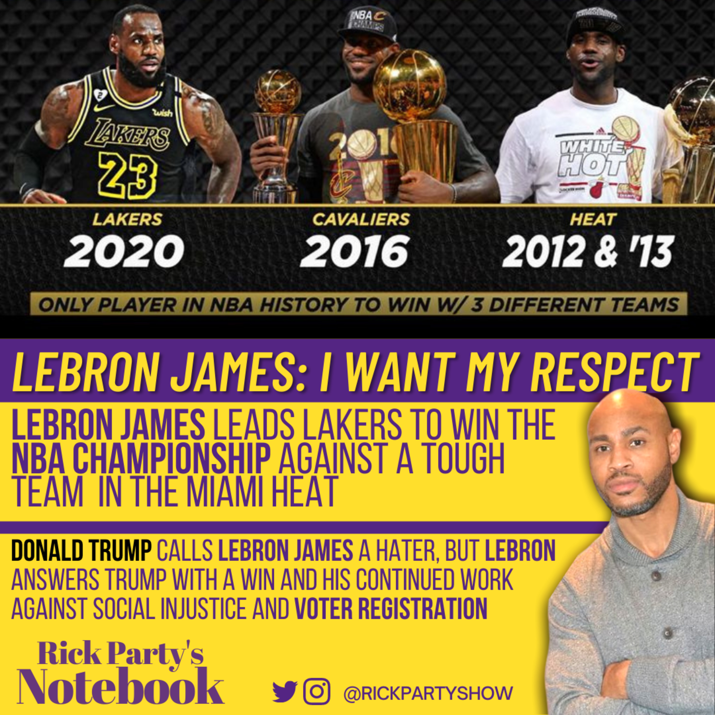 Brother, continue your work as a philanthropist, humanitarian, social activist and especially a husband & father. And, congrats on your 4th NBA Championship with your 3 team!