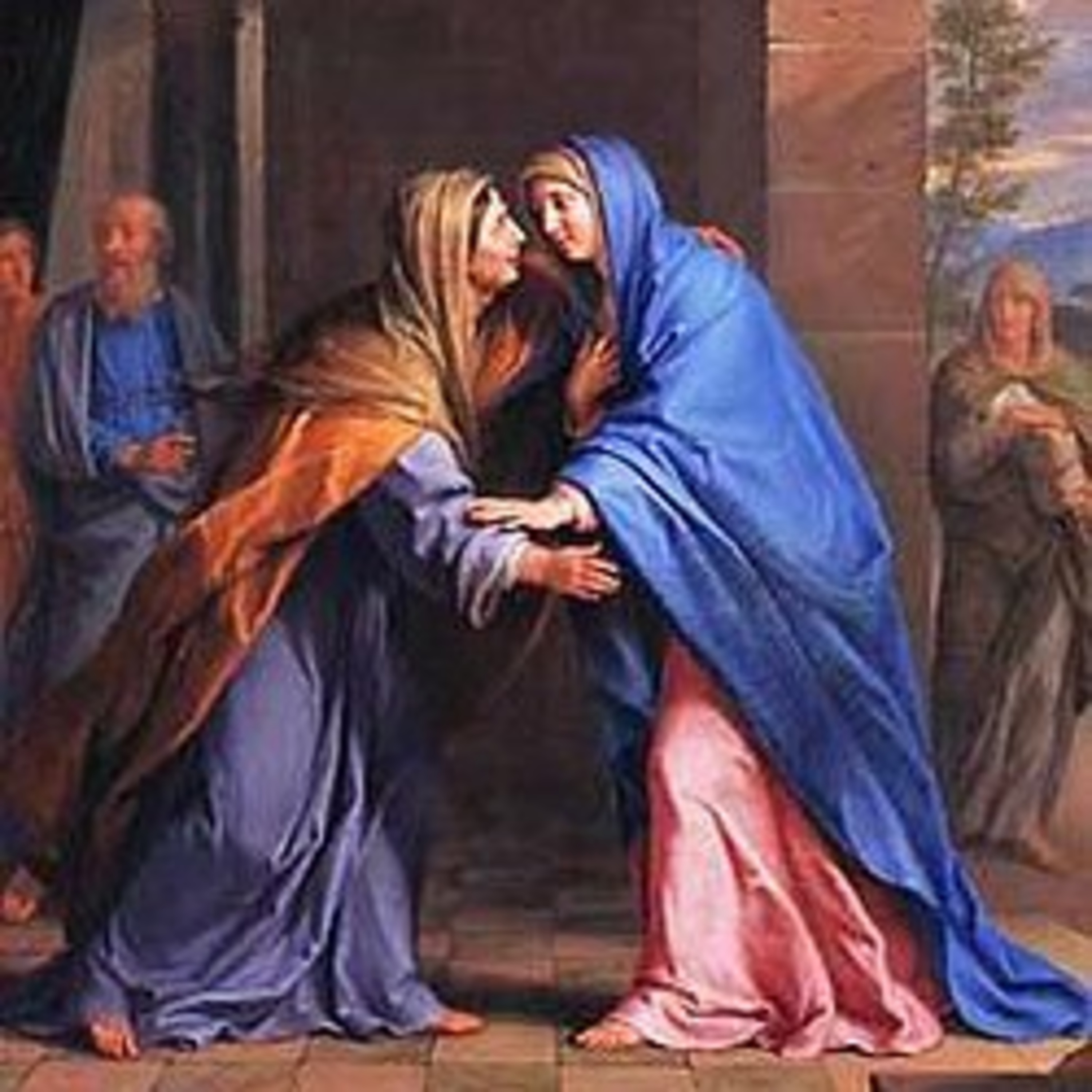 ईश्वर के पुत्र को अपने गर्भ में लेकर ईश्वरीय आनंद, जो पवित्र आत्मा का फल है, से भर कर, सुसमाचार सुनाने के लिए एलिजाबेथ से मिलने निकलती हैं।