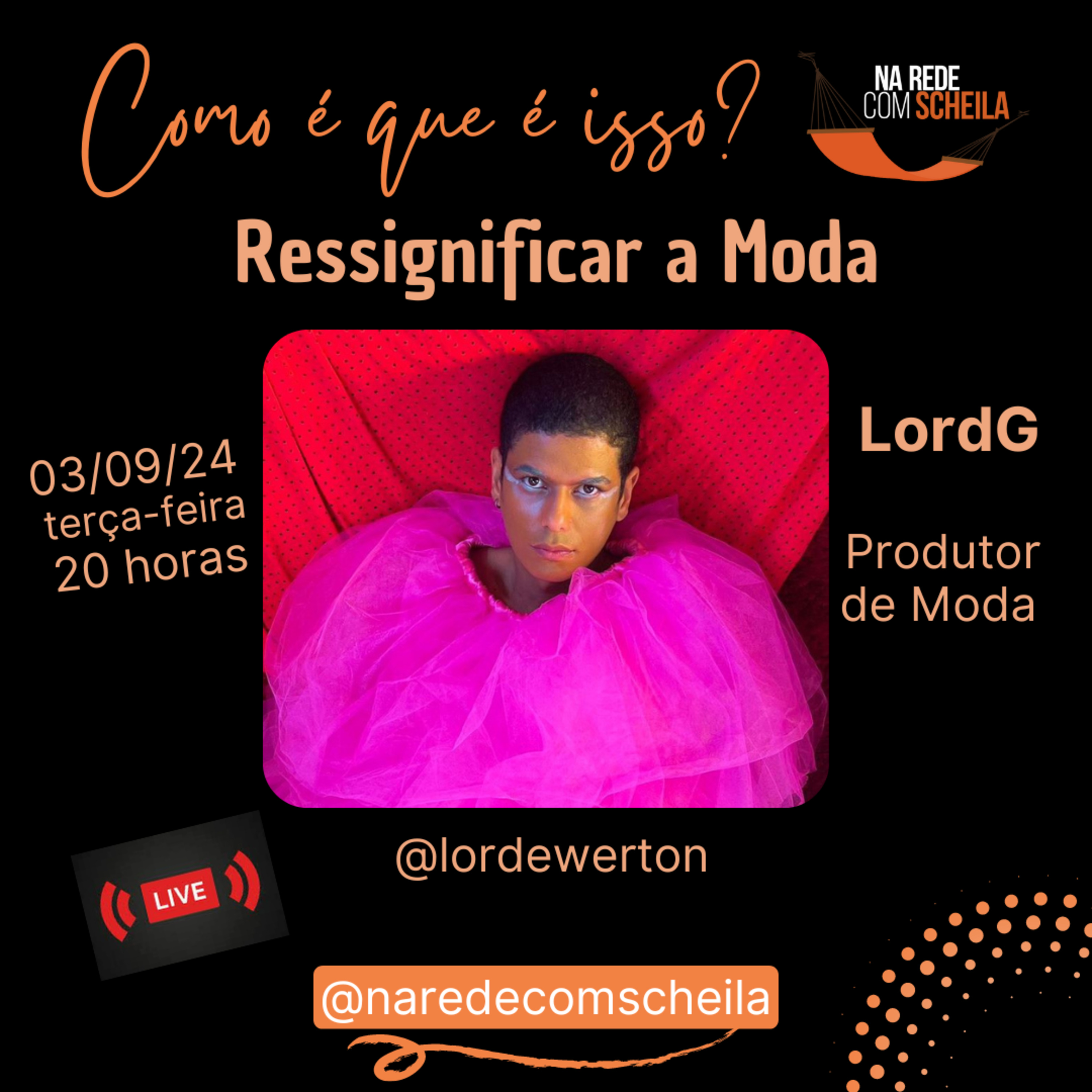 Começamos setembro com novas lives! E quem está com a gente nesta terça-feira, dia 03, é o Produtor de Moda friburguense LordG.