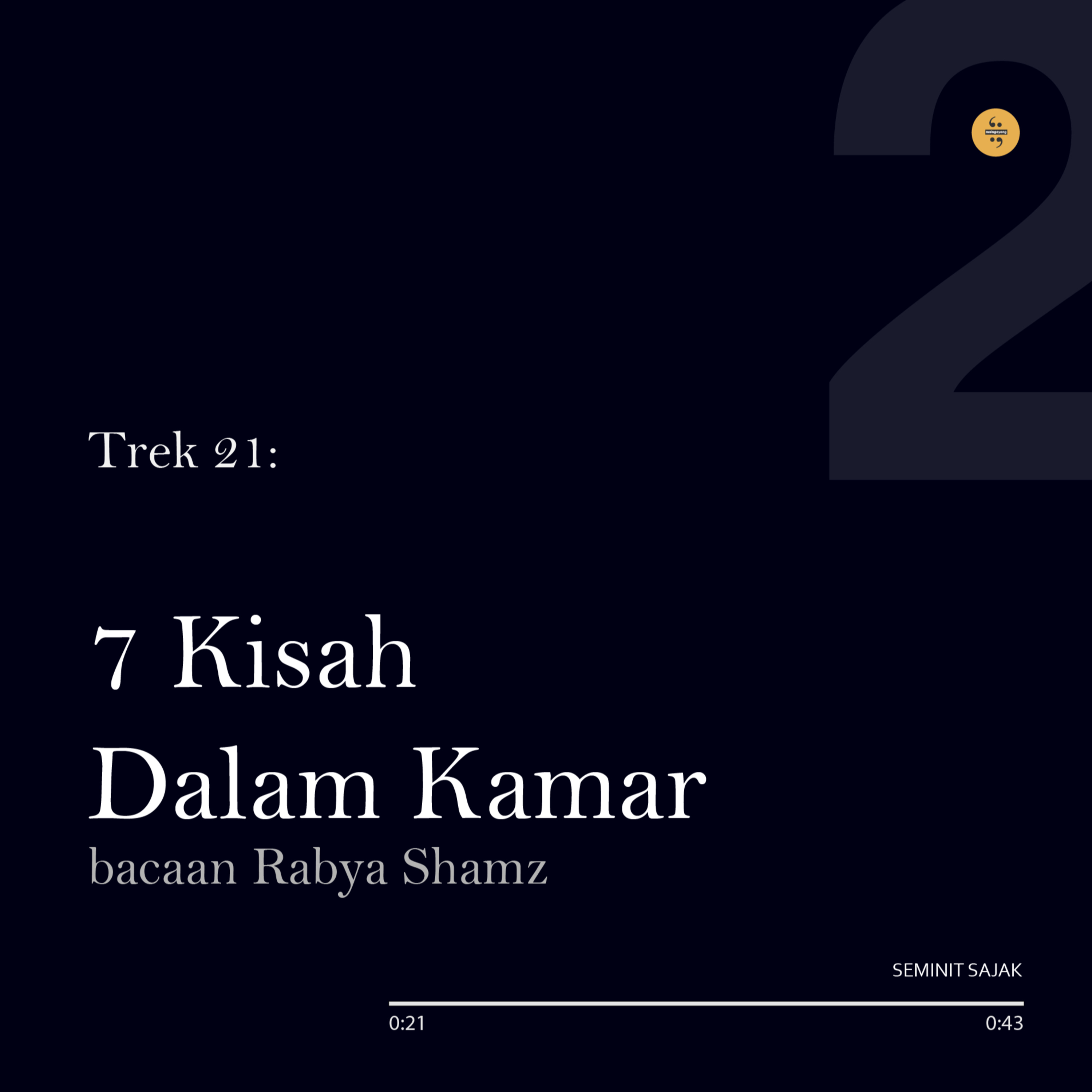 Dipetik daripada buku sulung Syaheeda Hamdani, 7 Kisah Dalam Kamar meniupkan nyawa kepada penghuni bilik yang lazim. Ketika bersama mereka, apakah tindak yang sering kita lakukan? Dari luar tingkap, mata Rabyashamz memerhati angin berubah ketika mulutnya membongkar segala jawapan.