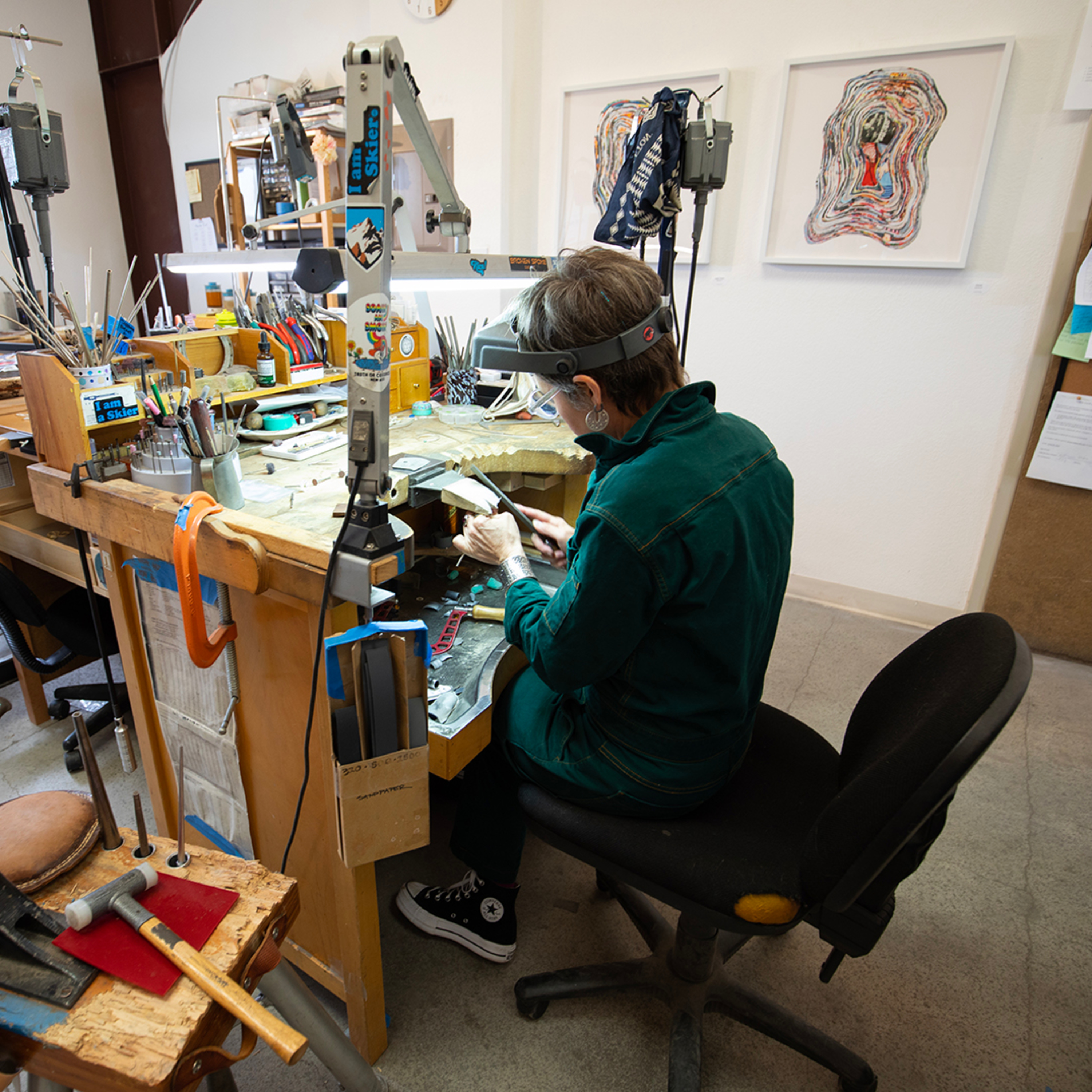 Belle Brooke Barer established Belle Brooke Designs in 2006 upon her return to Los Angeles. Born and raised in Houston, Texas, Barer ventured westward in 1997 to attend Pitzer College in Claremont, California. Her studies at Pitzer concentrated in various mediums of studio art, focusing mainly on photography. After moving north to the San Francisco Bay area, she began her jewelry studies at The Crucible in Berkeley, California, and later attended the Revere Academy of Jewelry Arts in San Francisco, where she received her professional certification as a goldsmith. After completing her studies, she worked for Studio 311 as a bench jeweler. Belle has been the recipient of various awards most notably the AGTA Spectrum awards in 2012 and 2018, the Mort Abelson New Designer of the Year award in 2008, and the Halstead Grant in 2007. She currently makes her home in Santa Fe, New Mexico where she runs her flagship store Rock + Feather in the new Siler Industrial area. All her jewelry is made in her workshop adjacent to the gallery, where she also teaches workshops and classes.