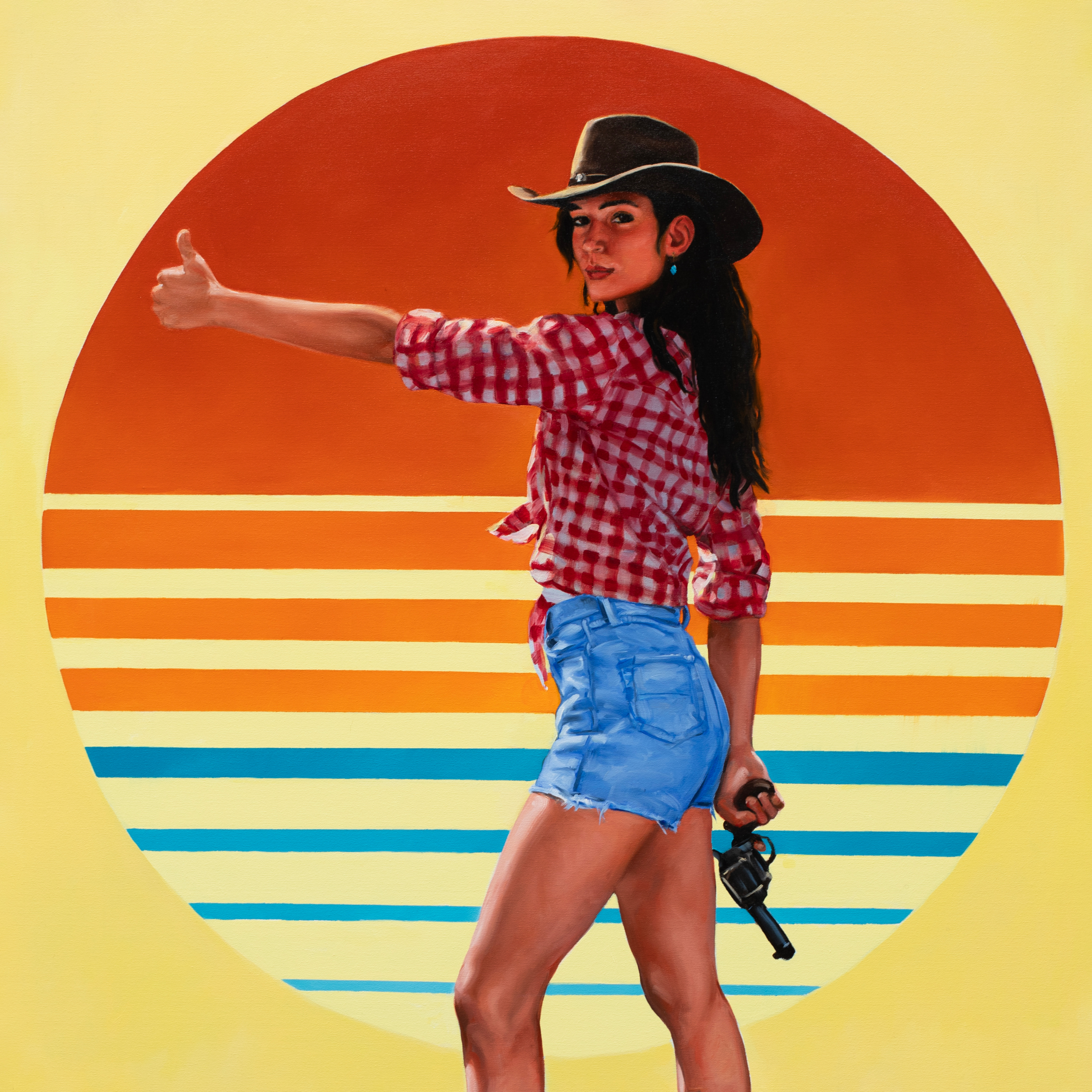 Blue Rain Gallery is thrilled to announce an important new exhibition featuring five captivating paintings by acclaimed artist Brad Overton. Drawing inspiration from the golden era of pin-up pop art in the 1950s-60s, Overton presents a contemporary interpretation, skillfully blending high-art techniques with bold visual imagery. Channeling influences from iconic pin-up artists like Mel Ramos and Gil Elvgren, Overton elevates the legendary form with highly stylized, graphic elements, employing technical figure drawing and a carefully curated palette. Reminiscent of American cigarette advertisements and movie posters, these nostalgic yet fun works showcase Overton's tongue-in-cheek humor and straightforward visual approach. With themes of the Southwest and the open road, the paintings collectively offer a playful and erotic journey through quintessential American subject matter. The exhibition will be on display at Blue Rain Gallery Santa Fe from February 23rd to March 8th, with an opening reception on Friday, February the 23rd from 5-7pm.