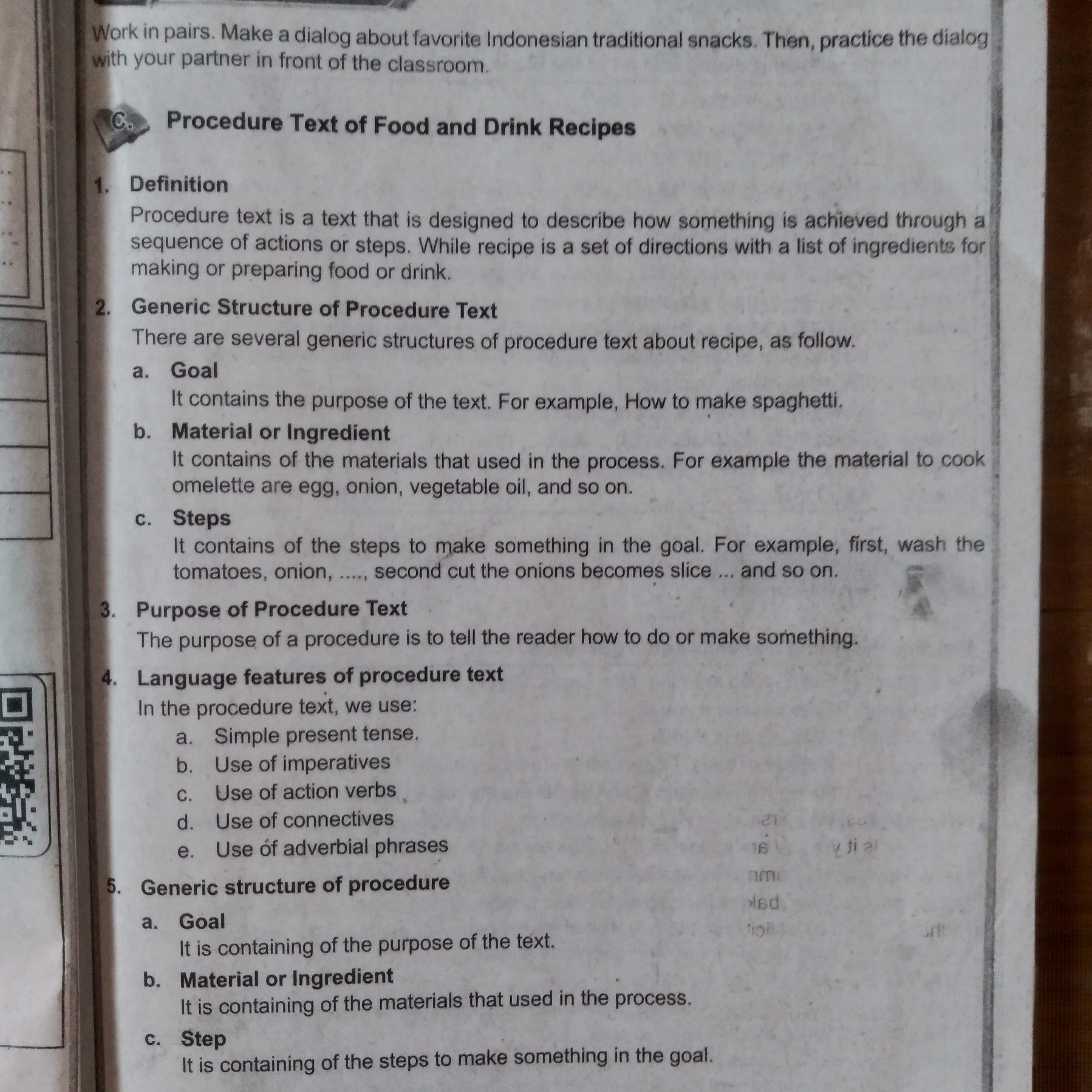 Generic structure of Procedure Text Food and Drink Recipe.