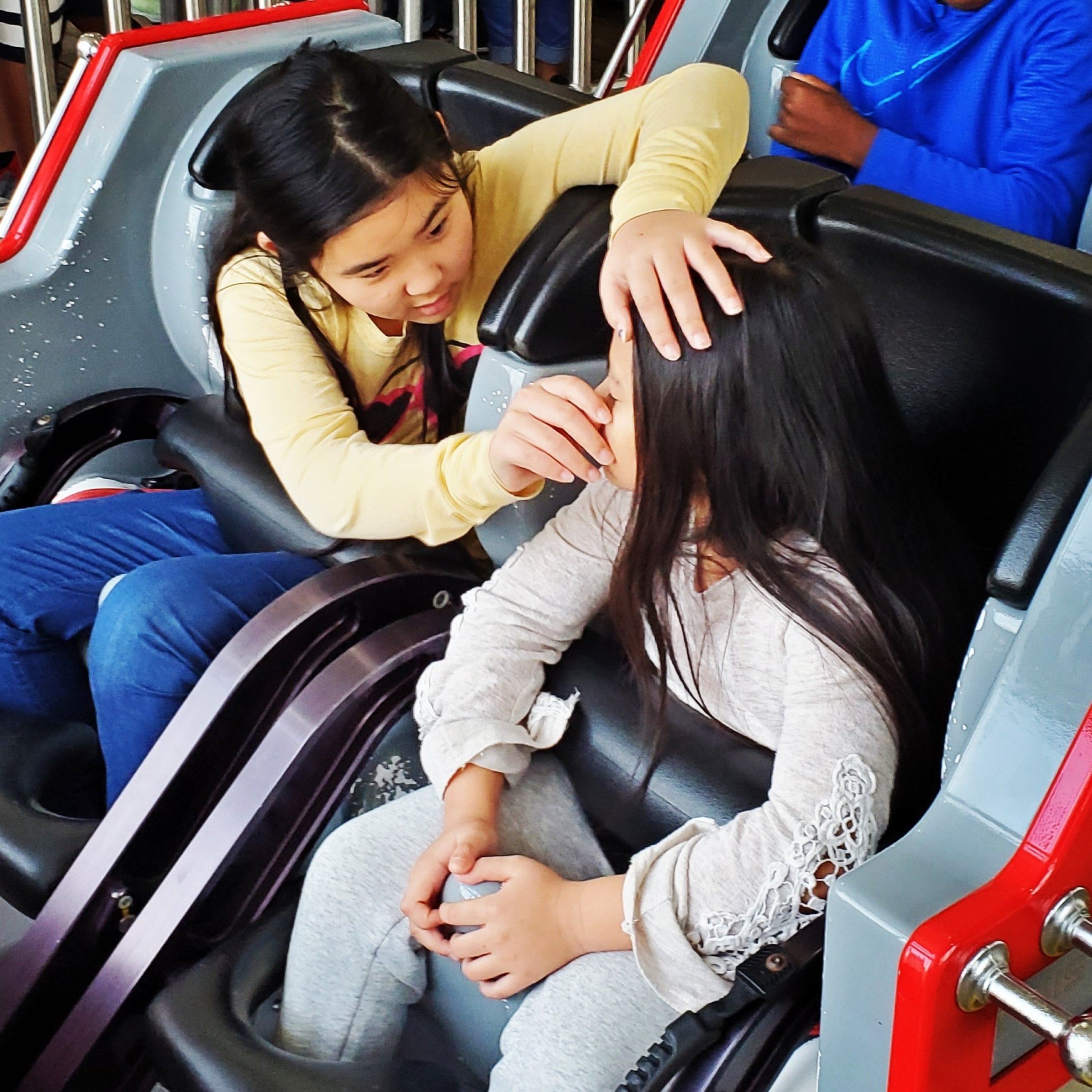 After getting off a rollercoaster I rushed over to my younger daughter and asked, "Annabelle, weren't you scared?!"
