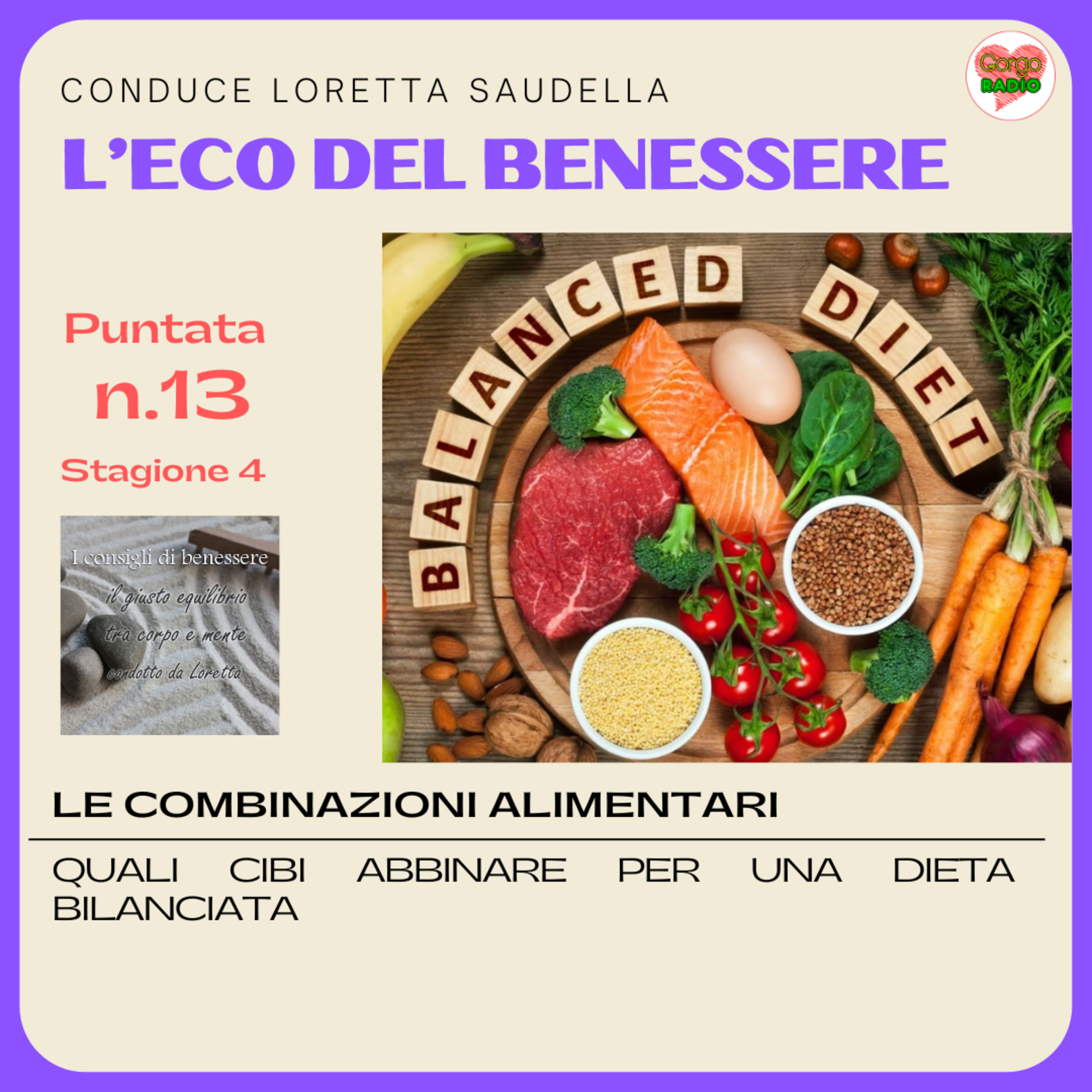 Loretta conduce "Ben Essere", ogni settimana su Gorgoradio.it L’argomento della settimana è: Le combinazioni alimentari, quali cibi abbinare