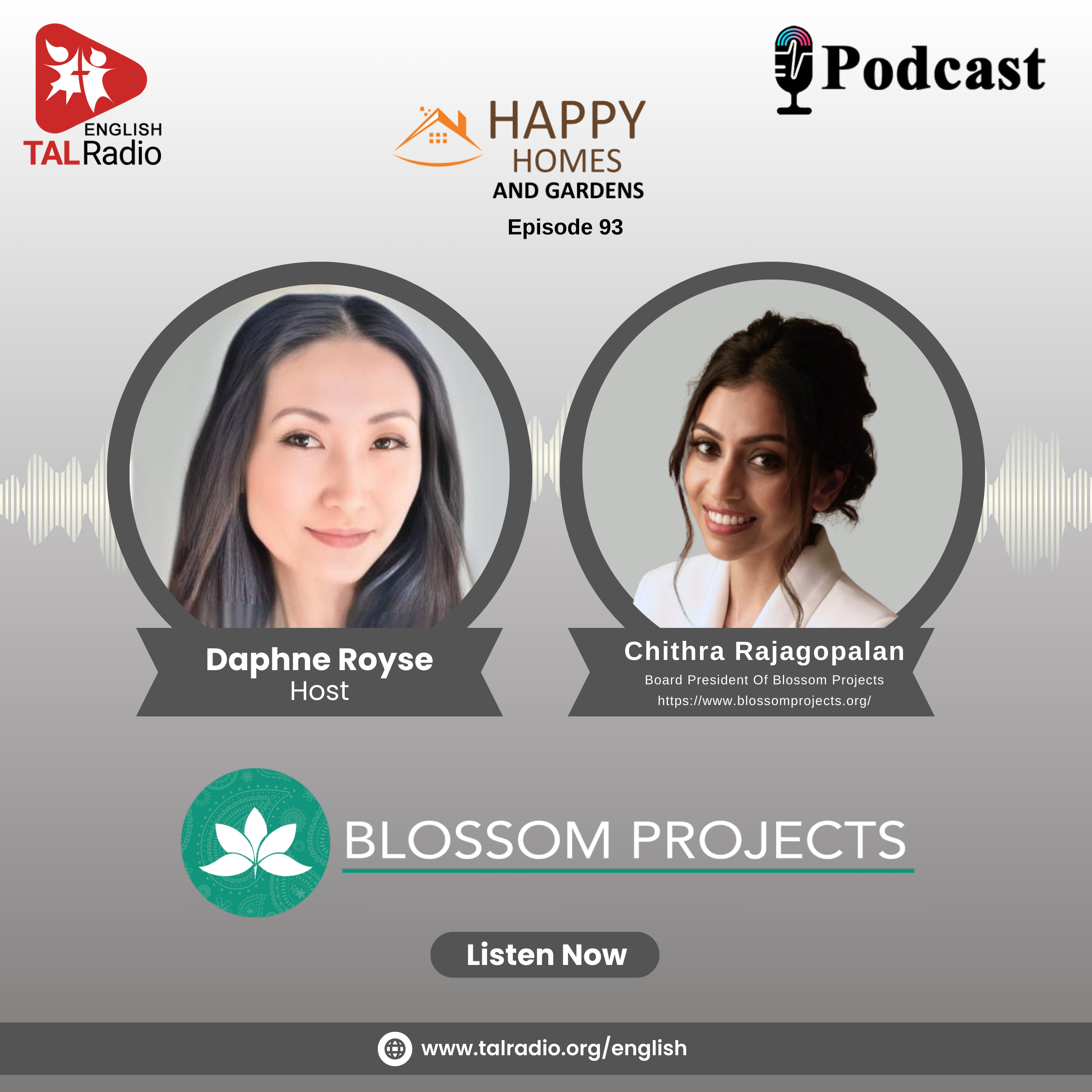 In this special episode of Happy Homes & Gardens, host Daphne Royse interviews Chithra Rajagopalan, Board President of Blossom Project. Recently featured on the cover of Red Hot Monde Magazine, Chithra is admired not only for her beauty but also for her dedication to creating educational opportunities and improving lives for young people. Tune in as Chithra shares her inspiring journey and the impactful work she leads at Blossom Project.