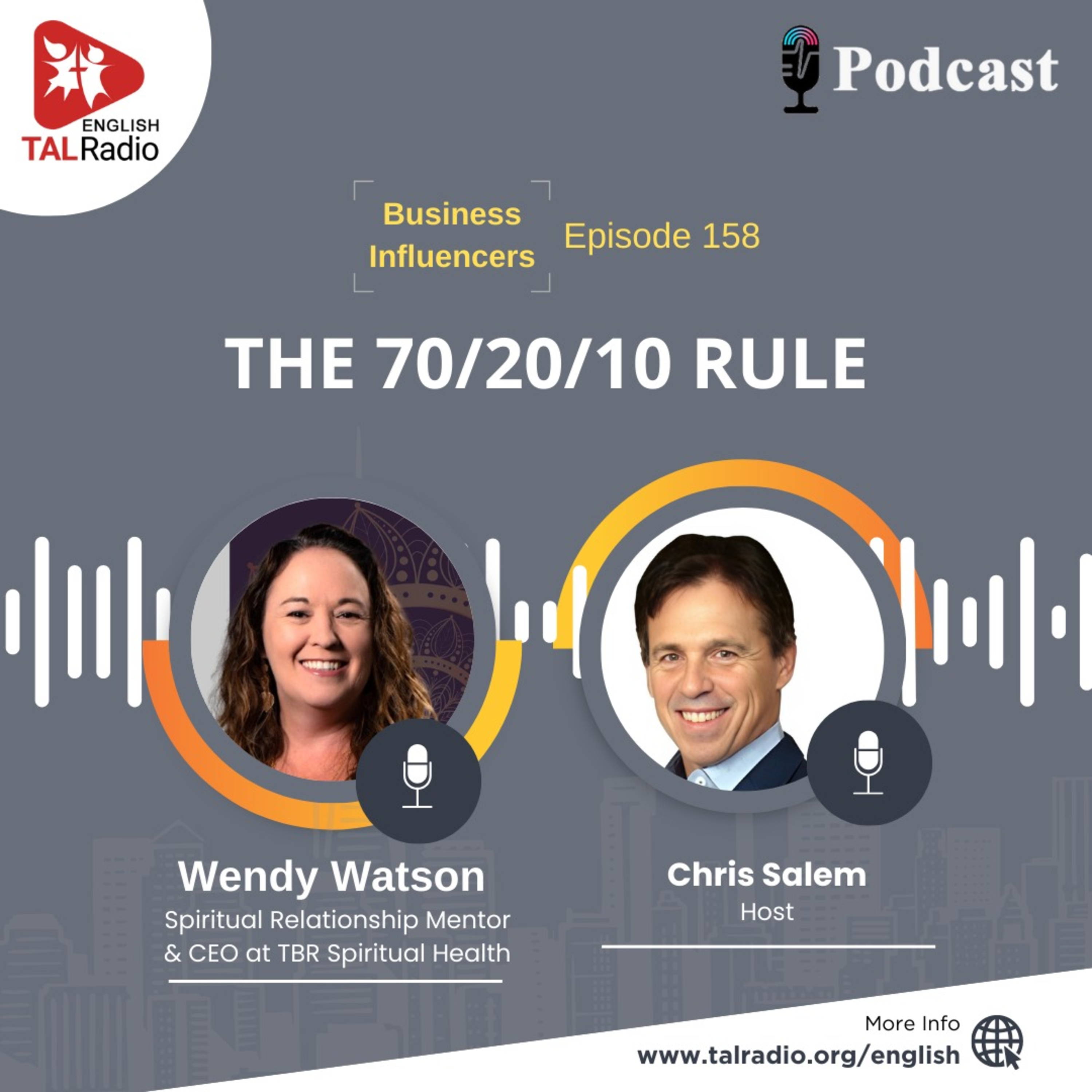 Tune into a transformative podcast with Wendy Watson, Spiritual Relationship Mentor & CEO of TBR Spiritual Health, as she delves into the life-changing ""70/20/10 Rule"" from her book Verbal Turbulence. Discover how this powerful principle can help you heal from trauma, rebuild relationships, and create lasting peace. Don't miss this insightful conversation with host Chris Salem.