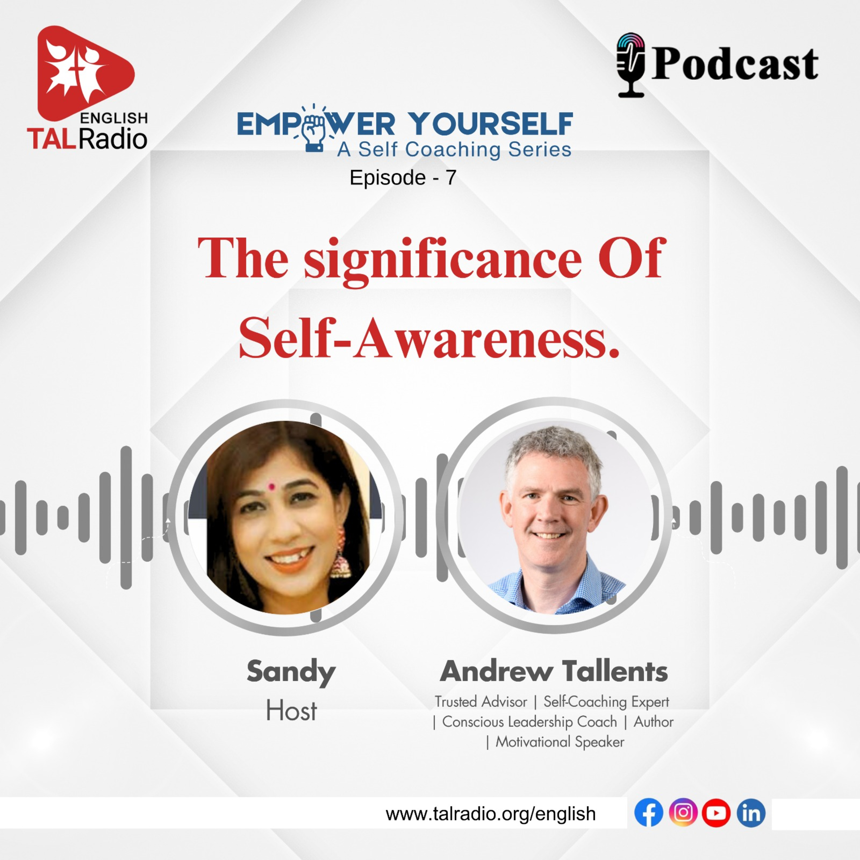 Explore the power of self-awareness in Episode 7 of Empower Yourself with Andrew Tallents, a trusted advisor, self-coaching expert, and conscious leadership coach. Uncover answers to "Who am I?" while learning transformative self-coaching techniques and leadership strategies. Hosted by Sandy, this episode offers insights to empower your personal and professional growth. Tune in to TALRadio English on Spotify and Apple Podcast.