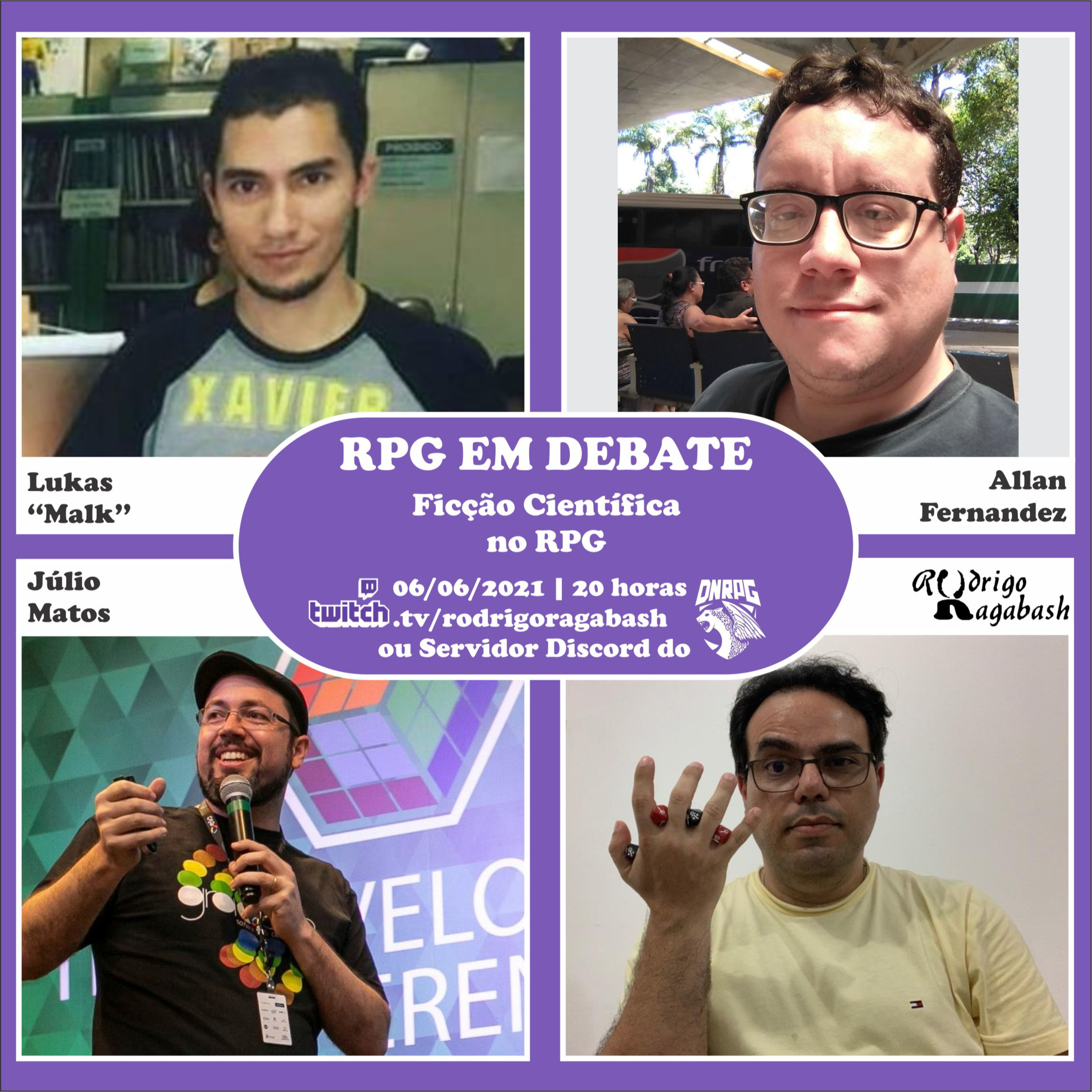 Este debate foi sobre o tema “Ficção Científica no RPG”, onde compartilhamos nossas opiniões e experiências sobre o uso desse temática para jogar sessões de RPG, e até criar cenários e jogos usando a ficção científica como pano de fundo.