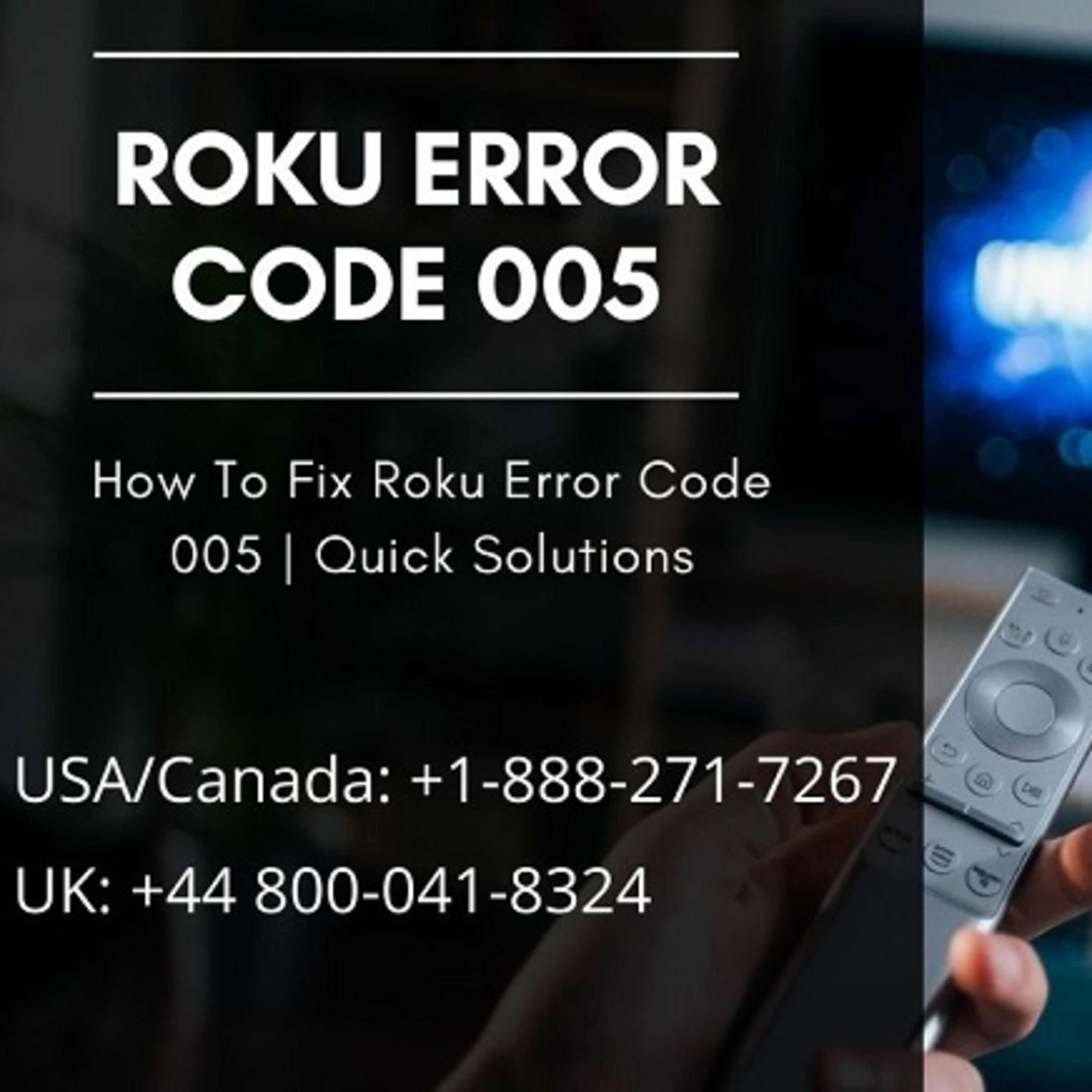 Roku Error Code 005 occurs when there are issues with the network connection. It can also occur while downloading or updating the newest software on your Roku device .For any network connectivity reason, the process terminates and shows Error Code 005 on your screen. For More Details Call our Experts USA +1-888-271-7267 & UK: +44-800-041-8324