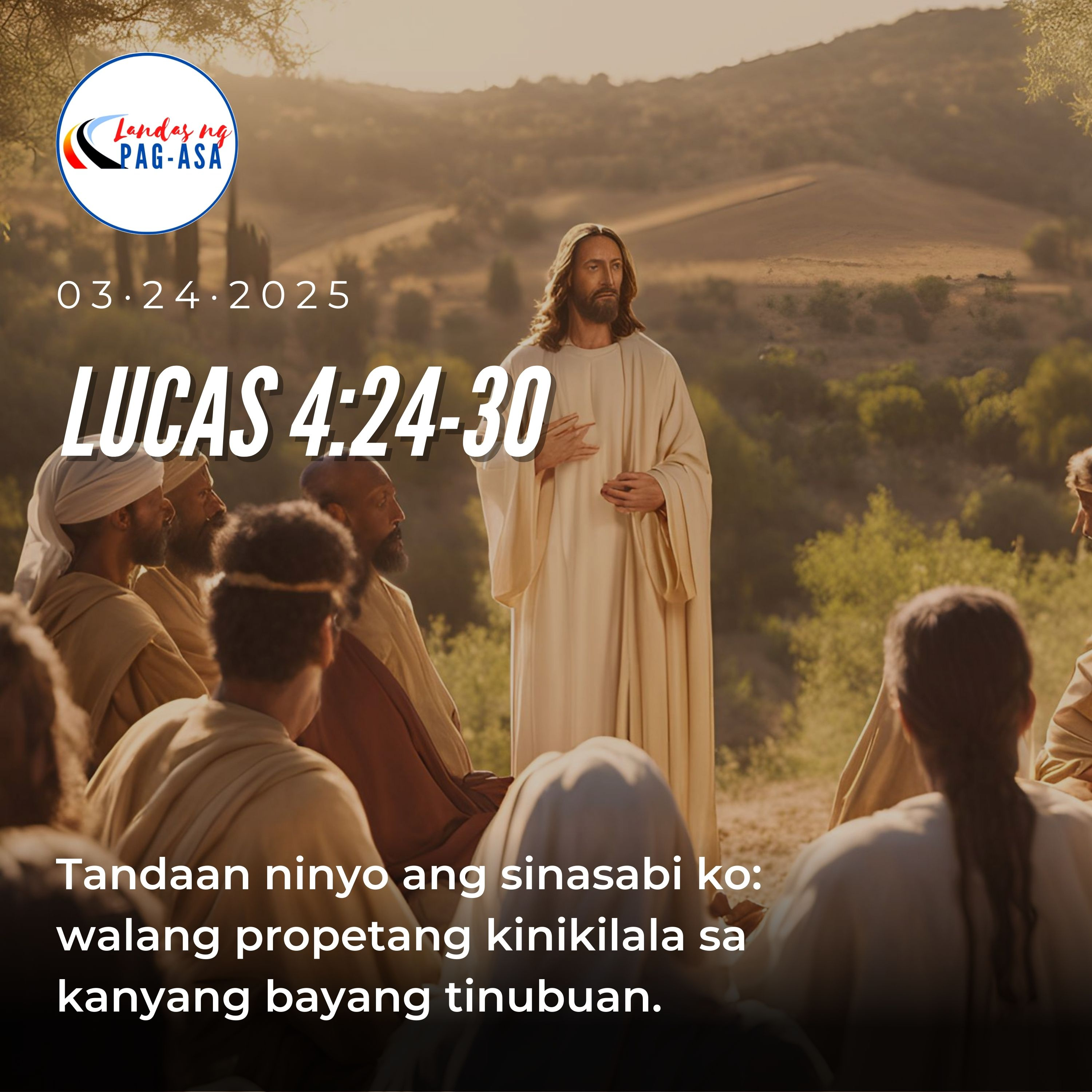 LUNES, MARSO 24, 2025Lunes sa Ikatatlong Linggo ng Apatnapung Araw na Paghahanda para sa Pasko ng Pagkabuhay MABUTING BALITA: LUCAS 4:24-30