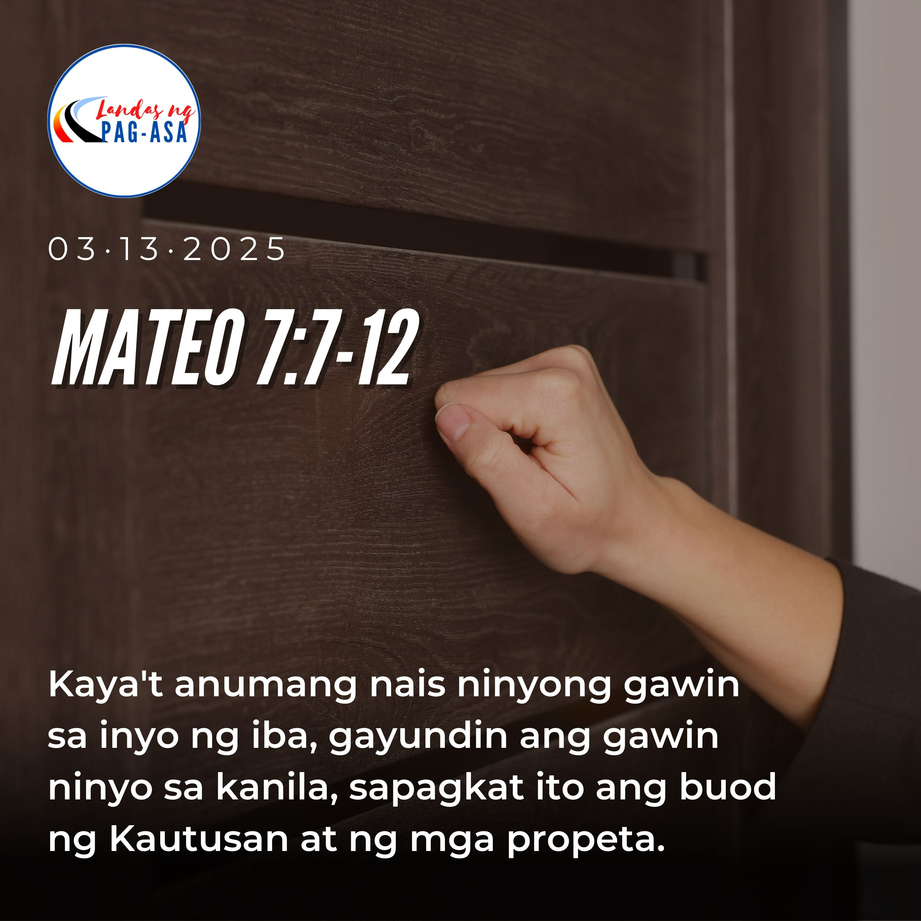 “Kaya't anumang nais ninyong gawin sa inyo ng iba, gayundin ang gawin ninyo sa kanila, sapagkat ito ang buod ng Kautusan at ng mga propeta.Reflection by Jay Guiyab: BSCE graduate. Customer Service representative. Familia Member. Mission Head forSingles-Baguio. Familia Young Adults Coordinator.#POHopegiver #LandasngPagasa #catholic #scriptures #bibleeadings #Jesus #CatholicChurch #christian #church #faith #god #jesuschrist #love #pray #bible #christianity #prayer #hope #gospel