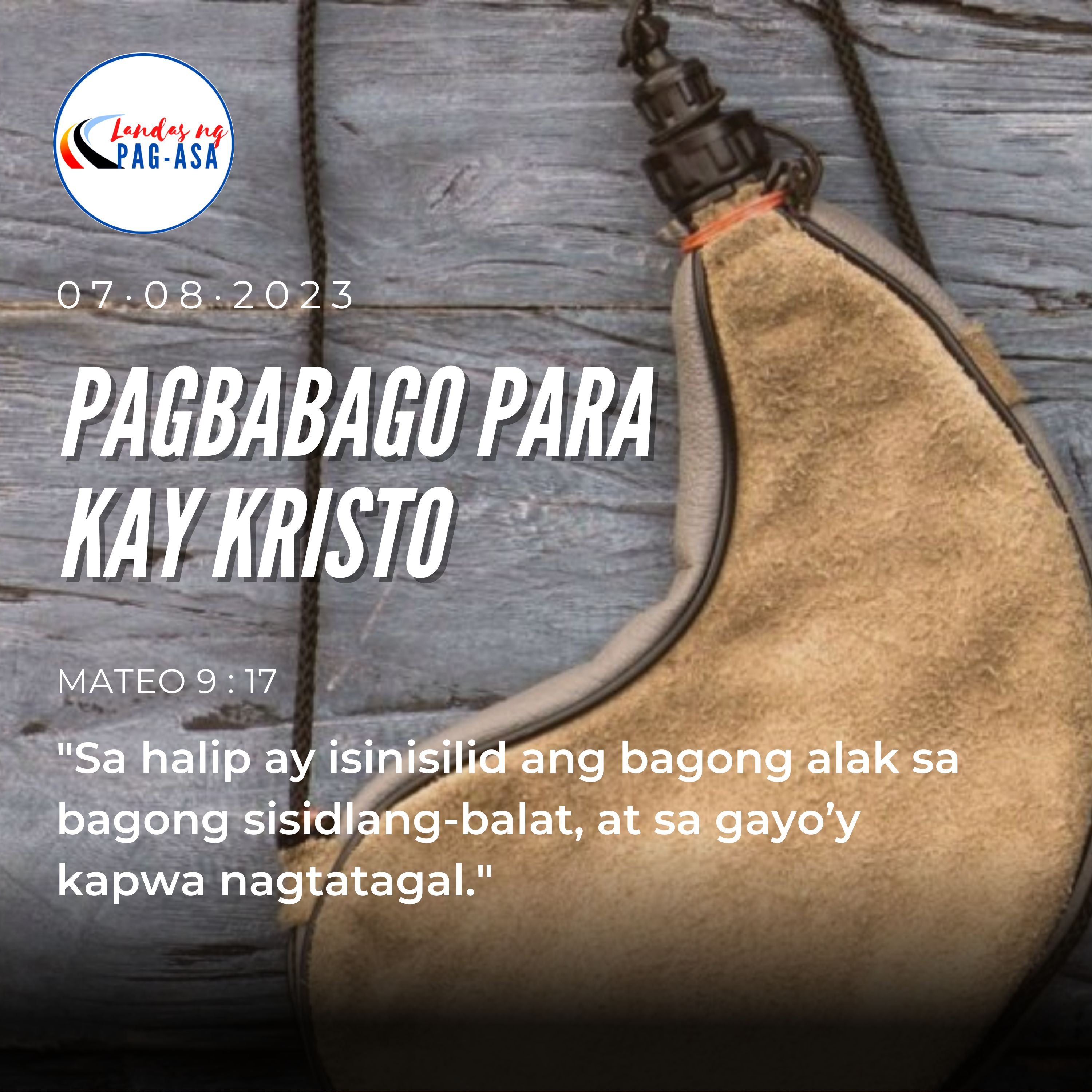 “Walang nagtatagpi ng bagong kayo sa isang lumang kasuutan; sapagkat mababatak nito ang tinagpian, at lalong lalaki ang punit. Wala ring nagsisilid ng bagong alak sa lumang sisidlang-balat. Kapag gayon ang ginawa, puputok ang balat, matatapon ang alak, at mawawasak ang sisidlan. Sa halip ay isinisilid ang bagong alak sa bagong sisidlang-balat, at sa gayo’y kapwa nagtatagal.”