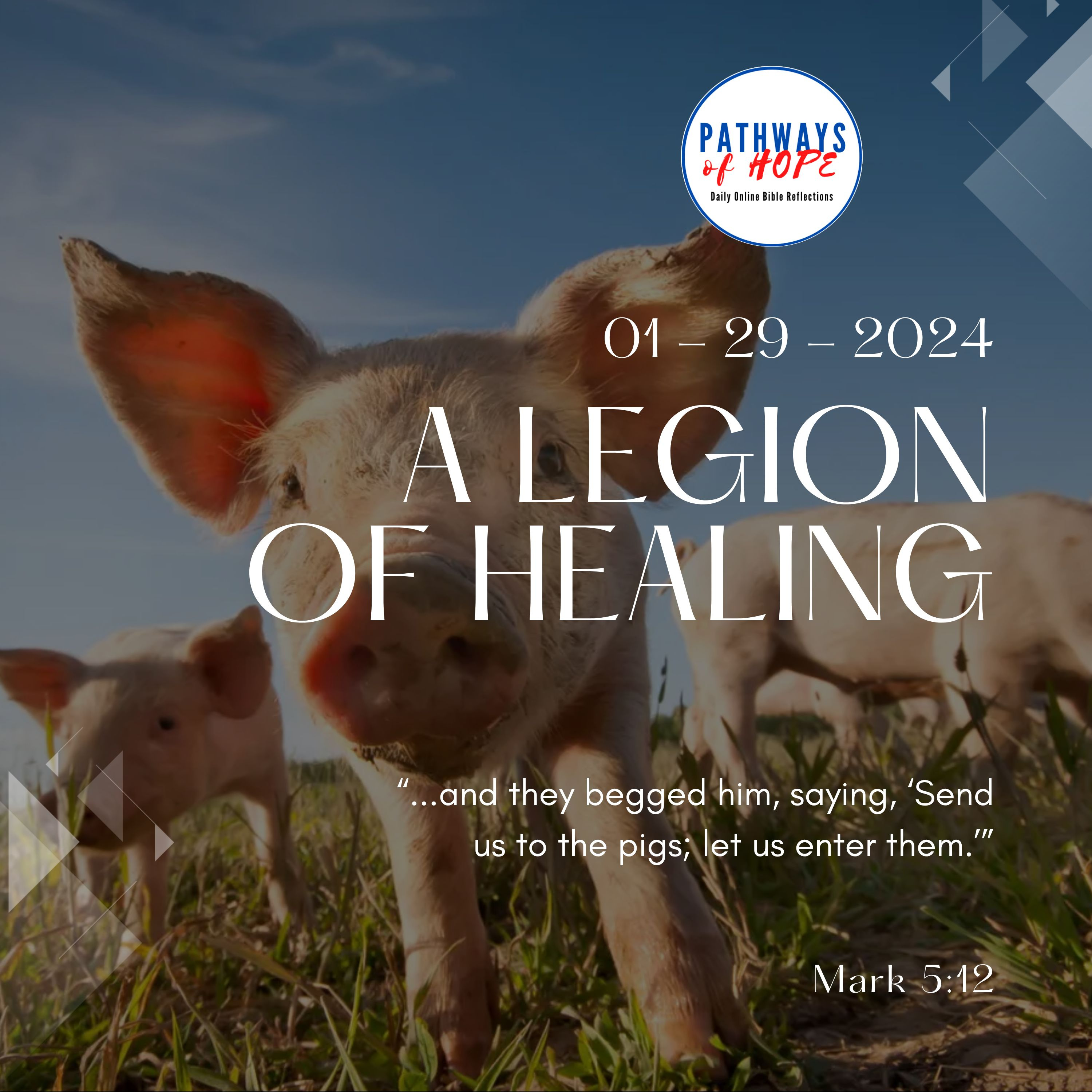 Now a large herd of swine was feeding there on the hillside. And they pleaded with him, "Send us into the swine. Let us enter them." And he let them, and the unclean spirits came out and entered the swine. The herd of about two thousand rushed down a steep bank into the sea, where they were drowned. The swineherds ran away and reported the incident in the town and throughout the countryside. And people came out to see what had happened. As they approached Jesus, they caught sight of the man who had been possessed by Legion, sitting there clothed and in his right mind. And they were seized with fear. Those who witnessed the incident explained to them what had happened to the possessed man and to the swine. Then they began to beg him to leave their district. As he was getting into the boat, the man who had been possessed pleaded to remain with him. But Jesus would not permit him but told him instead, "Go home to your family and announce to them all that the Lord in his pity has done for you." Then the man went off and began to proclaim in the Decapolis what Jesus had done for him; and all were amazed.