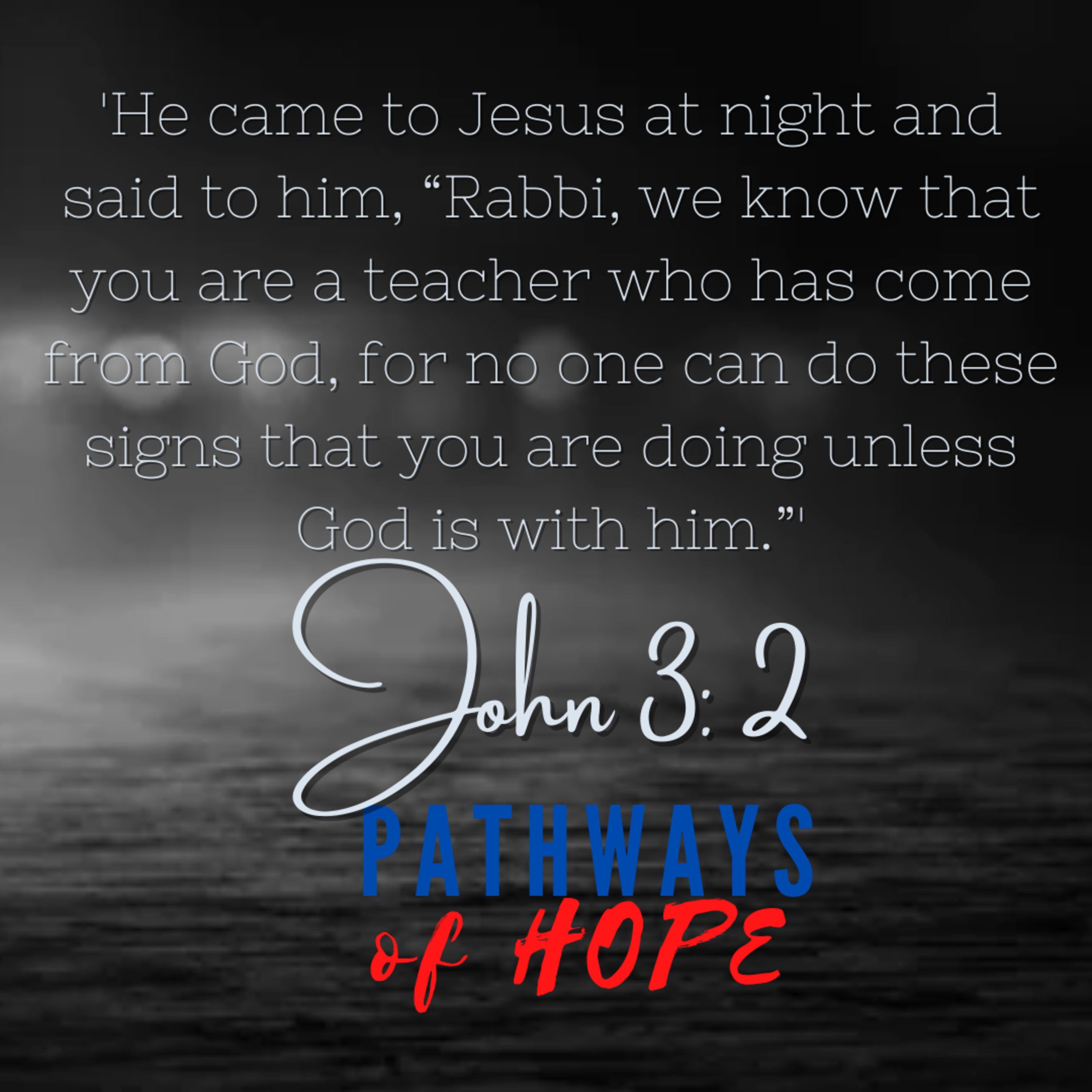 2This man came to Jesus by night and said to him, "Rabbi, we know that you are a teacher come from God; for no one can do these signs that you do, unless God is with him."