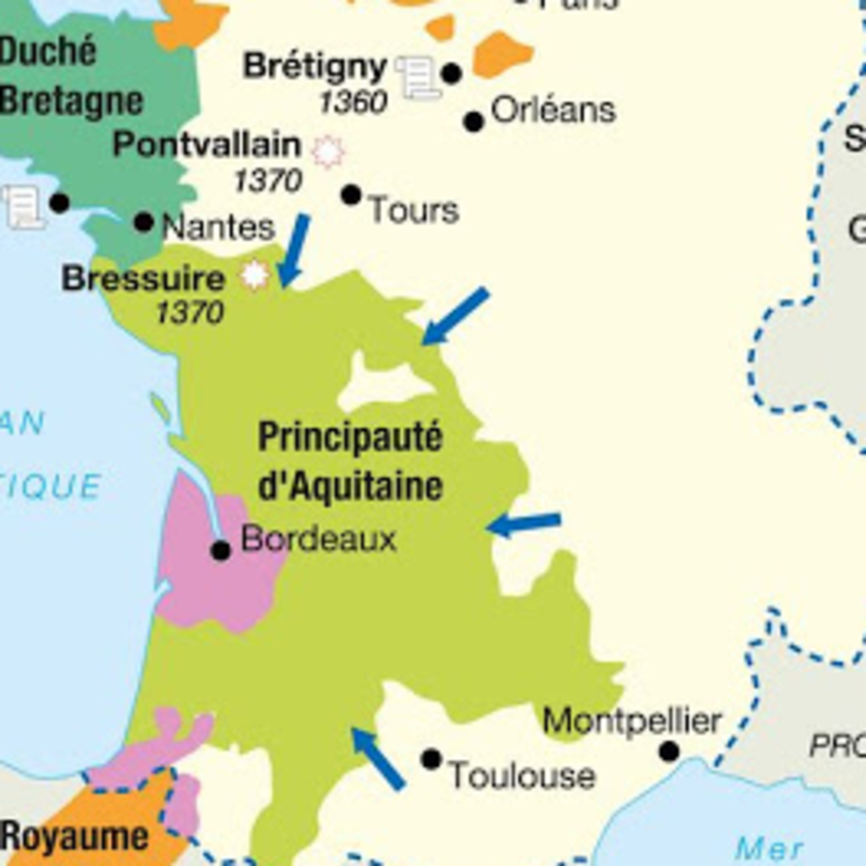 Louis I° de Thouars, vingt neuvième vicomte de Thouars meurt en 1370 sans héritier mâle. Sa fille aînée, Péronnelle, épouse Amaury IV Seigneur de Craon en 1345. Devenu vicomte de Thouars, il est fait prisonnier à la bataille de Poitiers en 1356. Libéré, comme beaucoup d’autres seigneurs du Poitou, il se plie aux exigences du traité de Brétigny en 1360 malgré ses accointances avec le roi de France. Contraint, il se bat aux côtés des anglais lorsque Du Guesclin, son ancien capitaine, vient assiéger la ville en tant que Connétable de France.