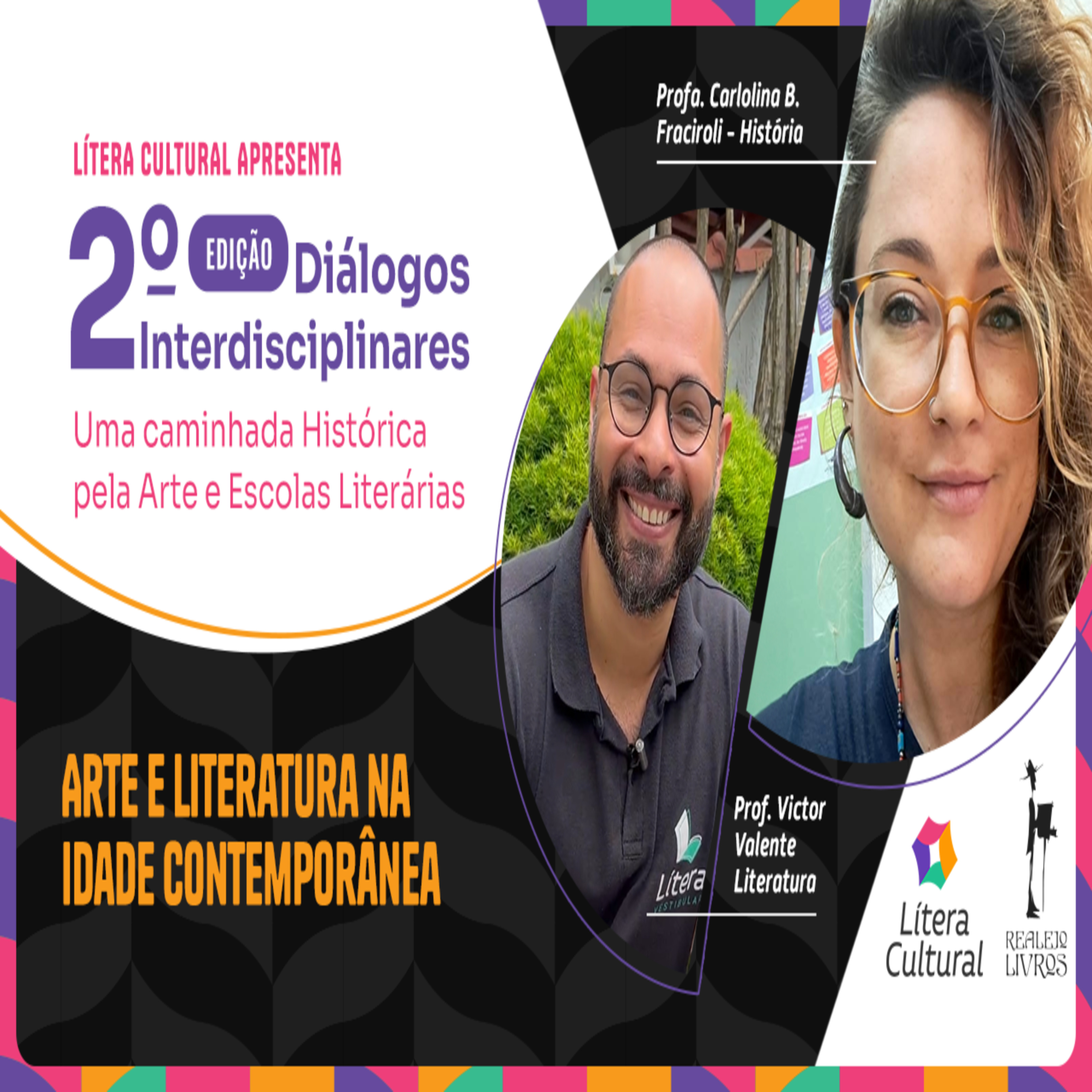 O projeto "Diálogos Interdisciplinares 2ª Edição", produzido pela Lítera Cultural, em parceria com o produtor Valmir de Souza, e realizado pela Lítera Vestibular busca aprofundar o conhecimento e estimular a reflexão sobre as artes e escolas literárias, considerando a análise do contexto histórico, social e econômico em que estão inseridas, por meio de 3 encontros interdisciplinares na livraria Realejo, em Santos/SP. Cada encontro aborda um período histórico específico.