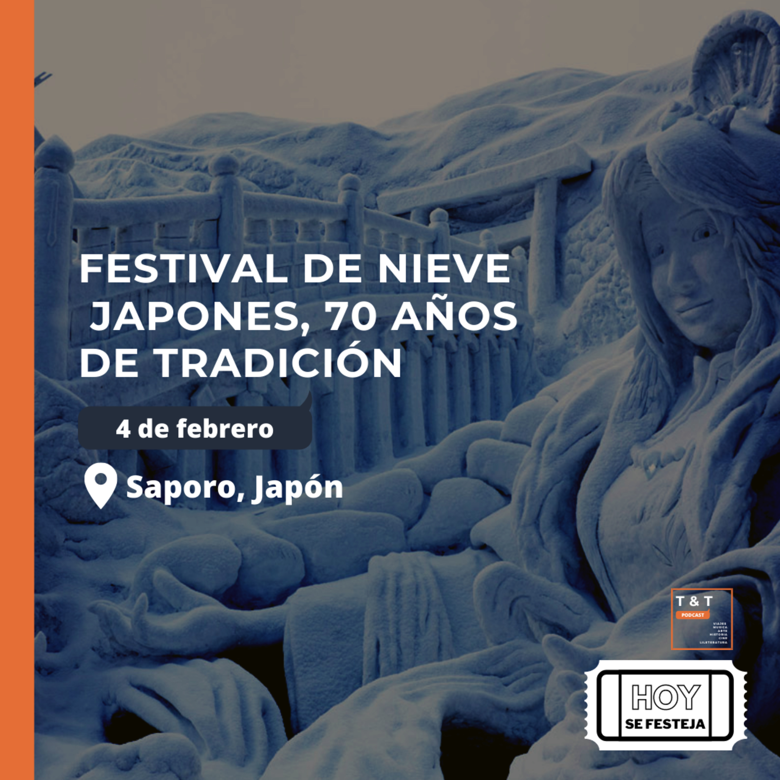 Bienevenidos este este episidio de los especiales hoy se festeja, donde de manera breve se comparte una festividad notoria en el mundo segun la ocación en la fecha especifica. El día de hoy El Festival de Nieve de Sapporo, uno de los más grandes de su tipo que sea ha realizado durante más de 70 años, y donde millones van a la capital de Hokkaido para admirar las creaciones de hielo y nieve instaladas en el Parque Odori, Susukino y Tsdudome repartidas por toda la ciudad. conoce mas y escuchalo.