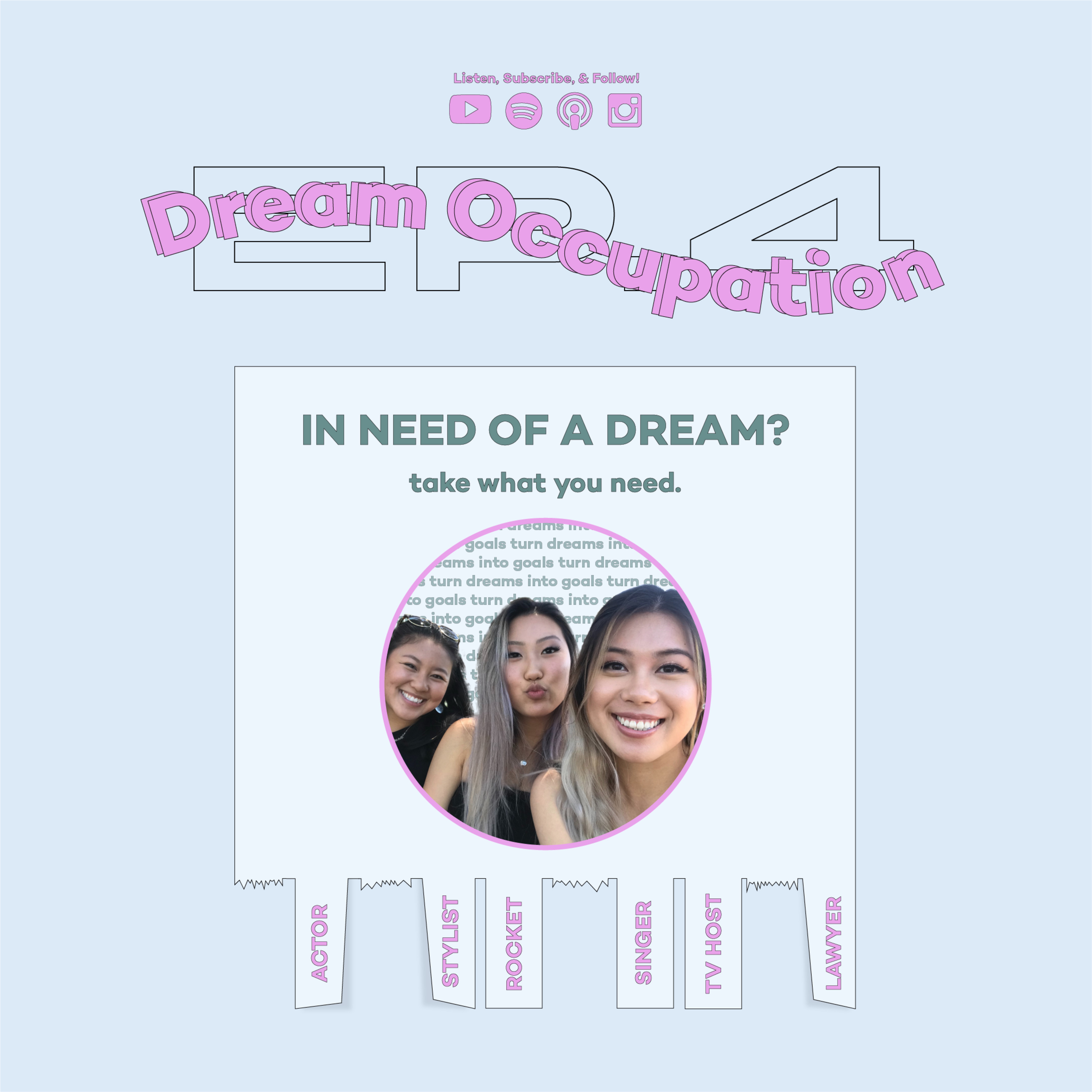 What is your dream occupation? Everyone has had a dream job — being a lawyer, being a singer, or in Jam’s case, being a Christmas tree?? In today’s episode, the trio discusses their past, present, and potential future goals. Who knows, maybe in 20 years time, they’ll look back to this episode and say, “We actually did it.”