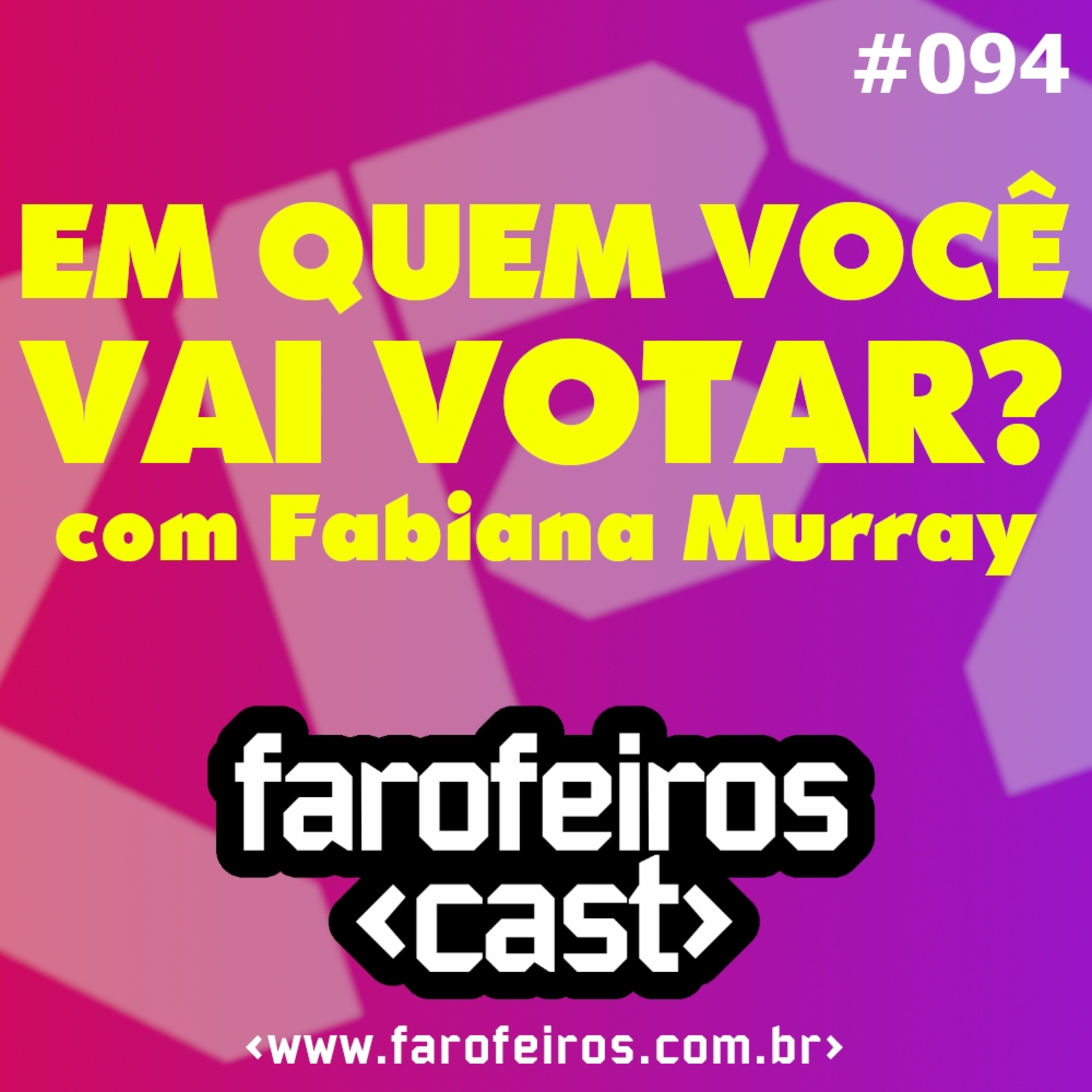 No Farofeiros Cast #094, gravado dia 27 de Setembro de 2022, entramos na reta final das Eleições 2022 e queremos saber em quem você vai votar! Neste episódio Paola Costa,Thii Gouveia,Pedro Octávio, José Fernando eRodrigo Castro recebem Fabiana Murray de um jeito parcialmente de esquerda.
