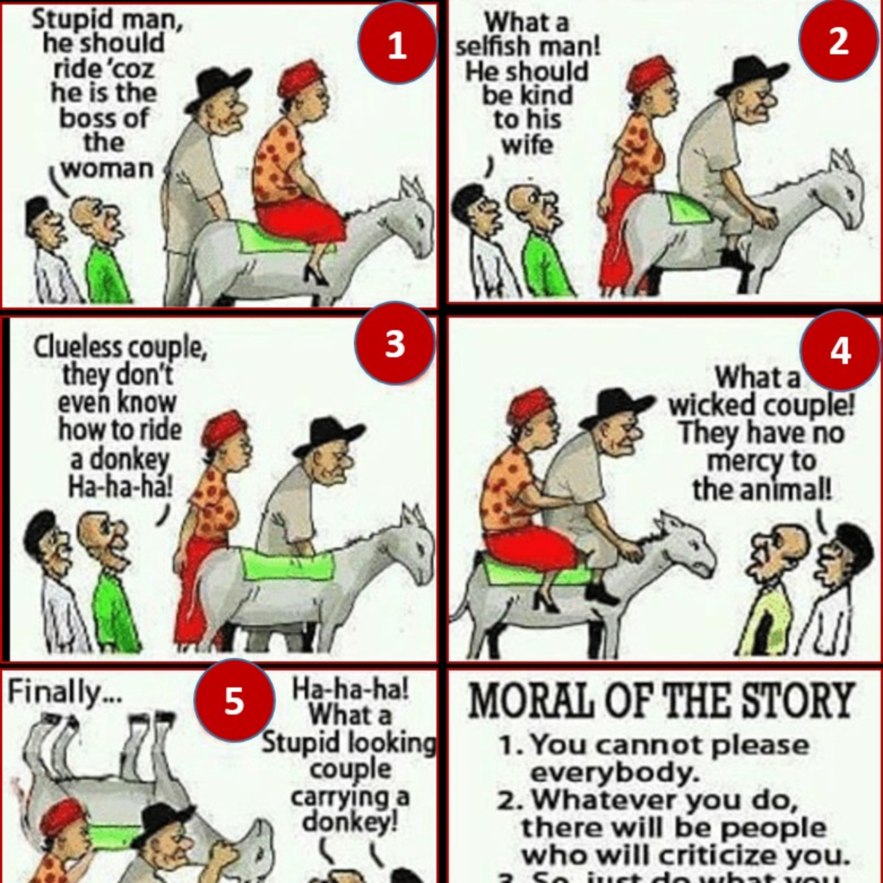 Hello Friends! We all as a human being value our surroundings little more than any other animal on this planet. Yes, and that's why we see each other and grow as well as on the other side we follow others and fall too! The whole idea of this episode is to make it clear that if we pay too much attention to others, we are not going to reach anywhere in our life and we will be like just dead at the end like the couple in this story. My dear friends, listening to critics is good for improvement but be careful, don't let any criticism distract you from your GOAL and destroy your PATH and make yiu move away from DESTINATION. Hear this fantastic story and look around as who is trying you to pull you down or distract you from your goals and just ignore them, BELIEV IN YOURSELF & make a BOLD ATTEMPT @ WAY TO SUCCESS!!!