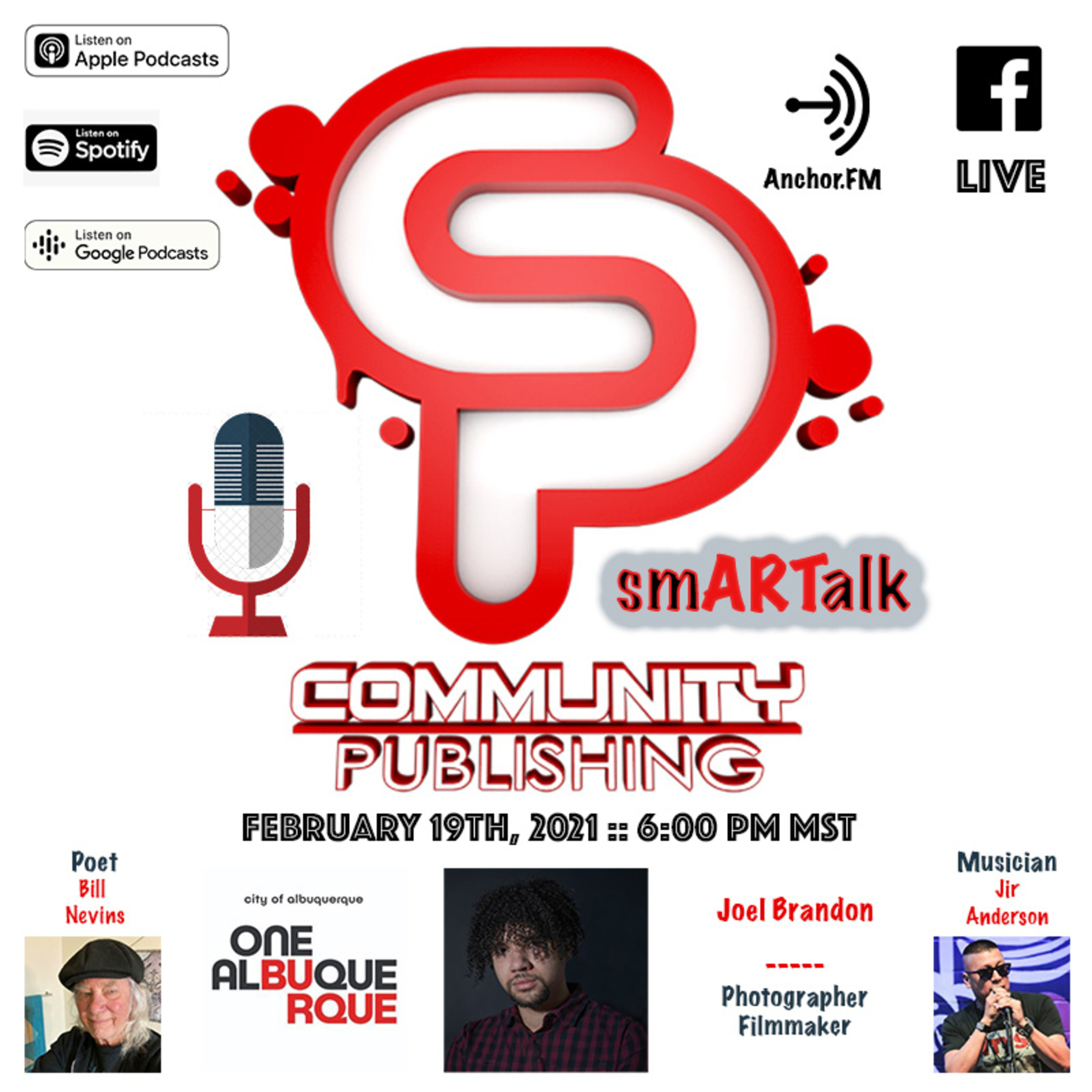 Sponsored by Anchor FM, smARTalk is an Albuquerque based talk show features the major personalities from the Film Industry who have or are currently filming in New Mexico, discussing progressive solutions to social issues that affect us all while promoting the wonderful artists of all mediums that call N.M., the Land of Enchantment, their home. To watch live visit https://www.facebook.com/CommunityPublishingABQ/live/More info about the show, archives and guests here http://www.communitypublishing.org/smartalk/ We will also be featuring businesses as well - ads@communitpublishing.org for info!