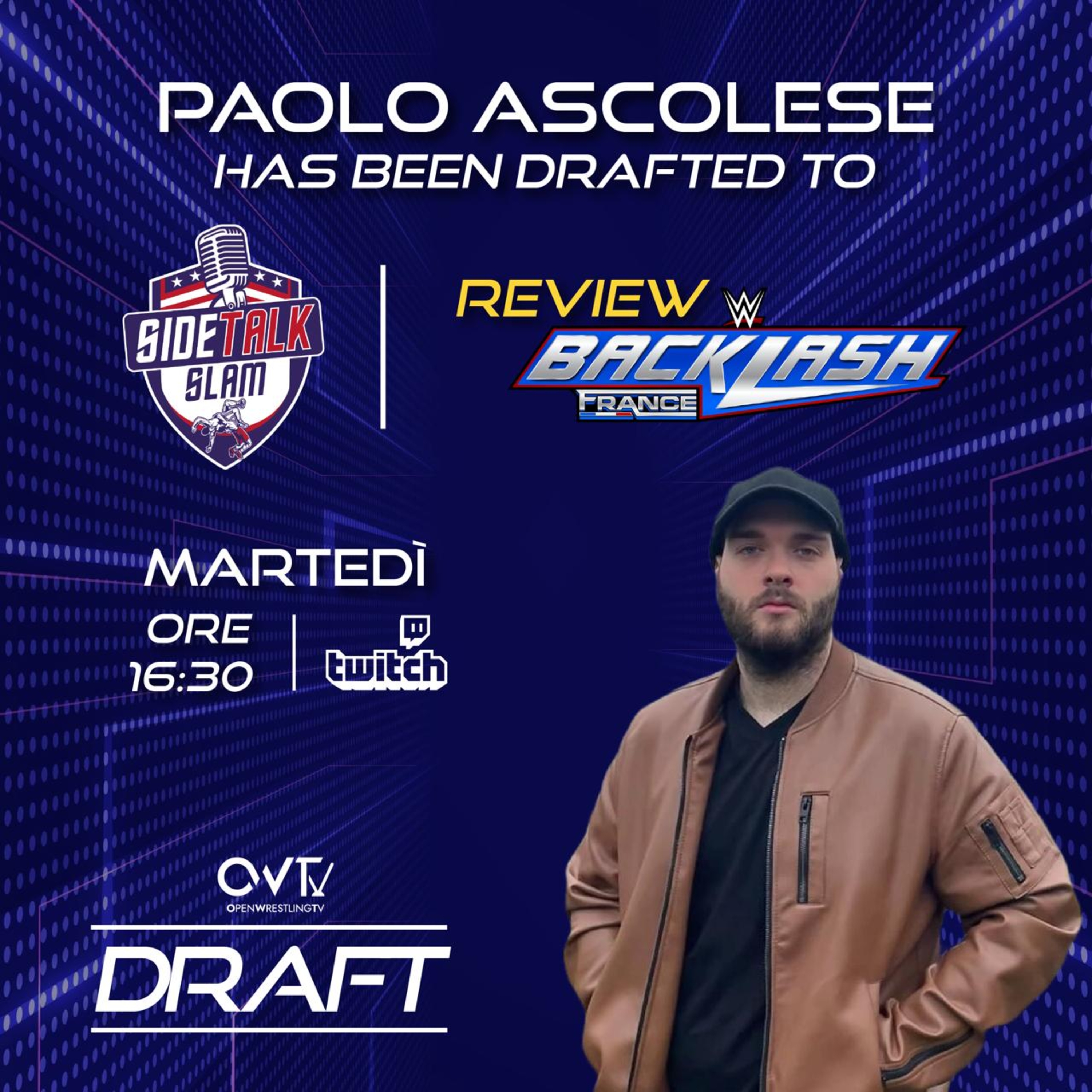 Per effetto del Draft di OpenWrestlingTV, eccezionalmente in conduzione Paolo Ascolese, volto noto di All About Elite. Insieme a lui tutta la crew di SideTalk Slam capitanata da Marco Enzo Venturini.
