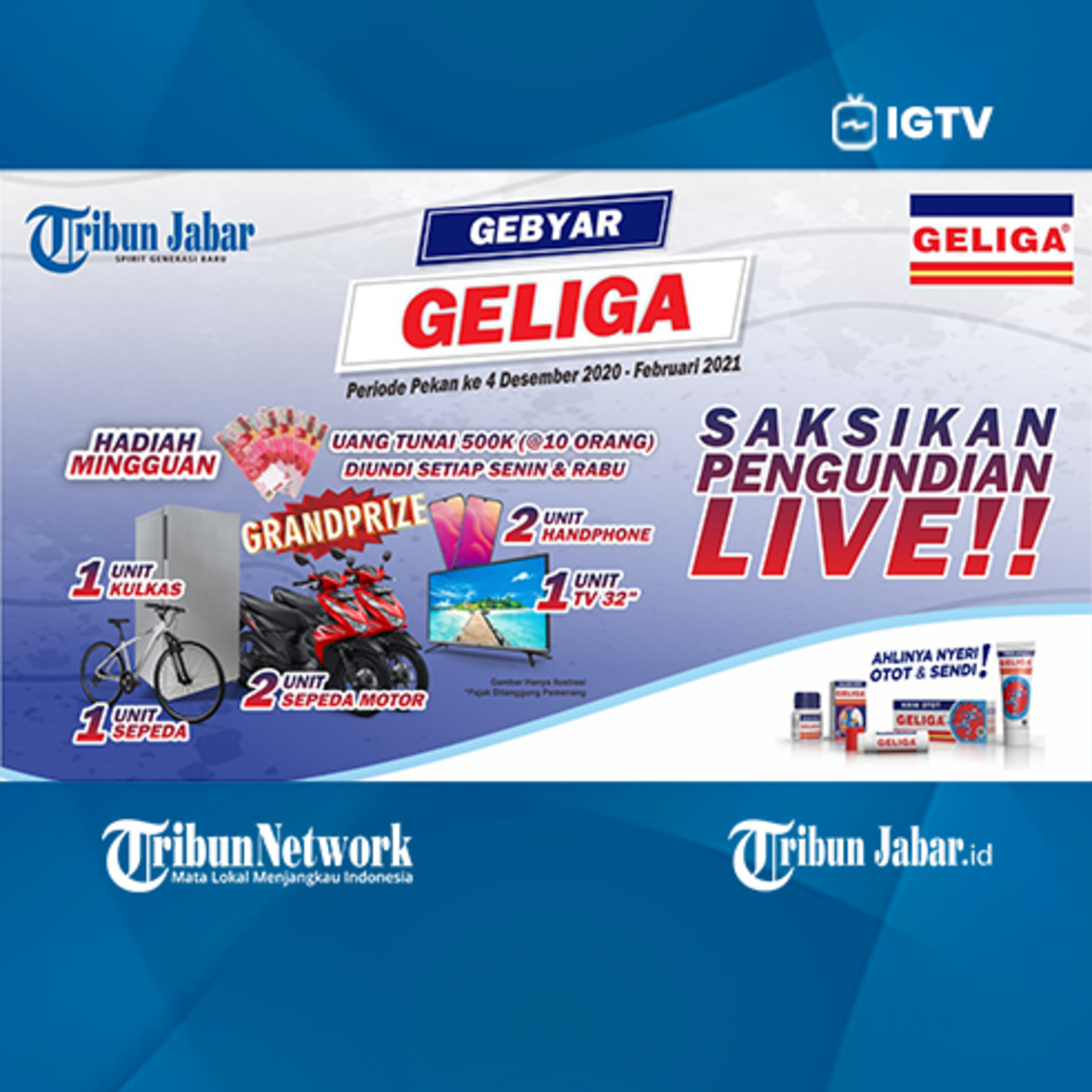 Ikuti undian GEBYAR GELIGA yang akan disiarkan langsung dari kanal Tribun Jabar!