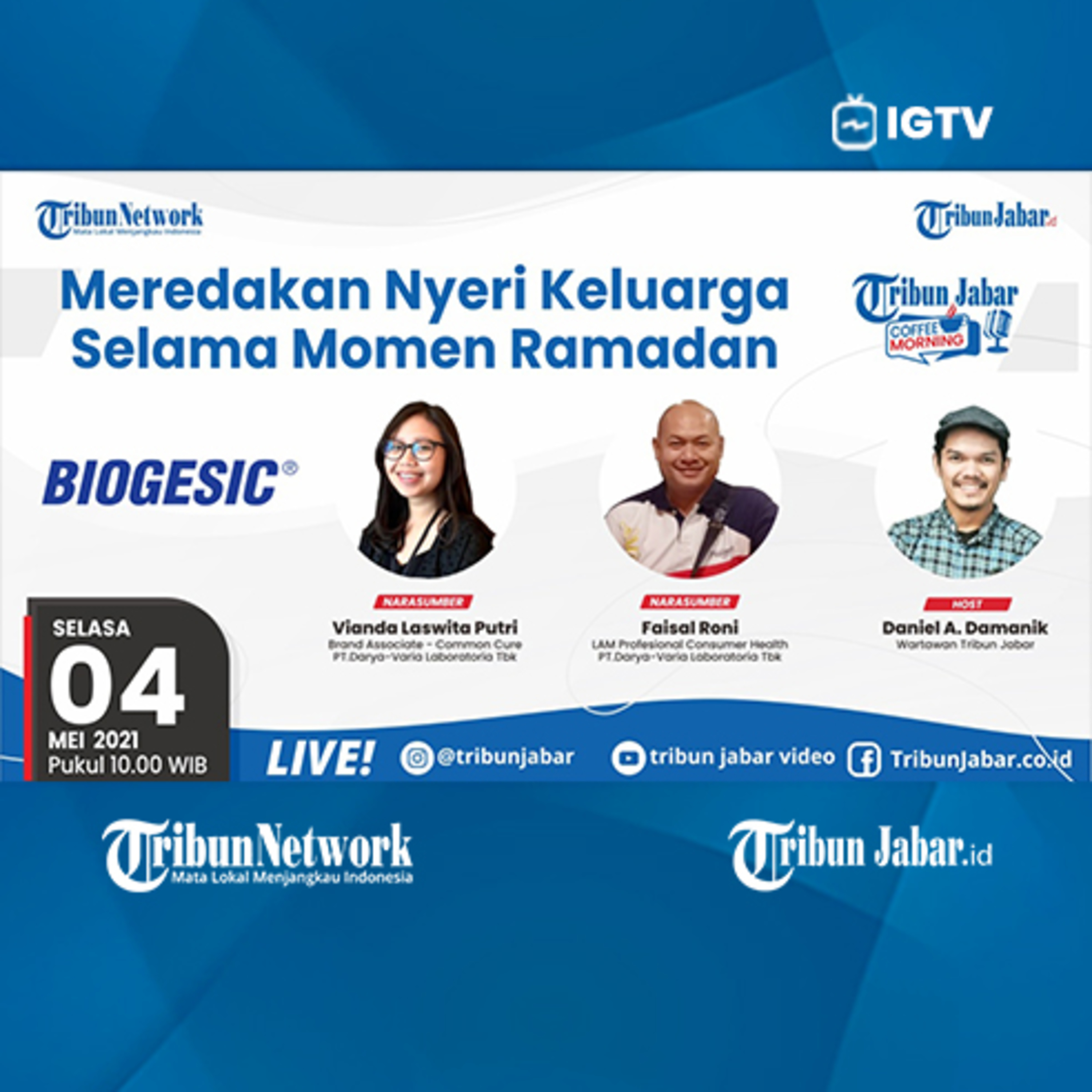 Jangan lupa saksikan program Coffee Morning Tribun Jabar bareng Biogesic dengan tema :