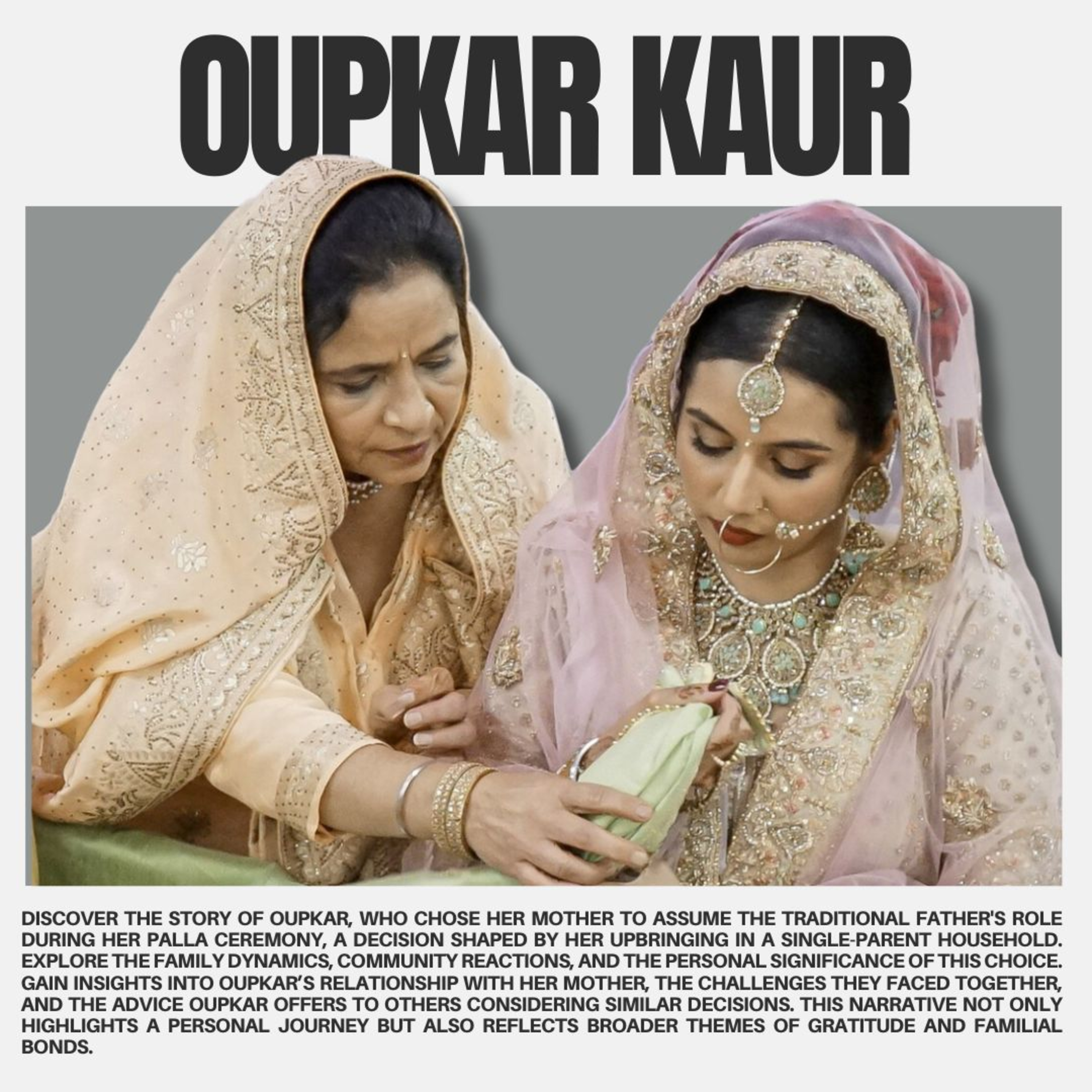 We talk about how Oupkar, in the footsteps of other women before her, picked her mother to take the traditional role of the father during her Palla ceremony. We talk about what went behind the decision, family reaction, Oupkar’s relationship with her mother, growing up in a single-parent household Oupkar’s advice to others and a whole lot more.
